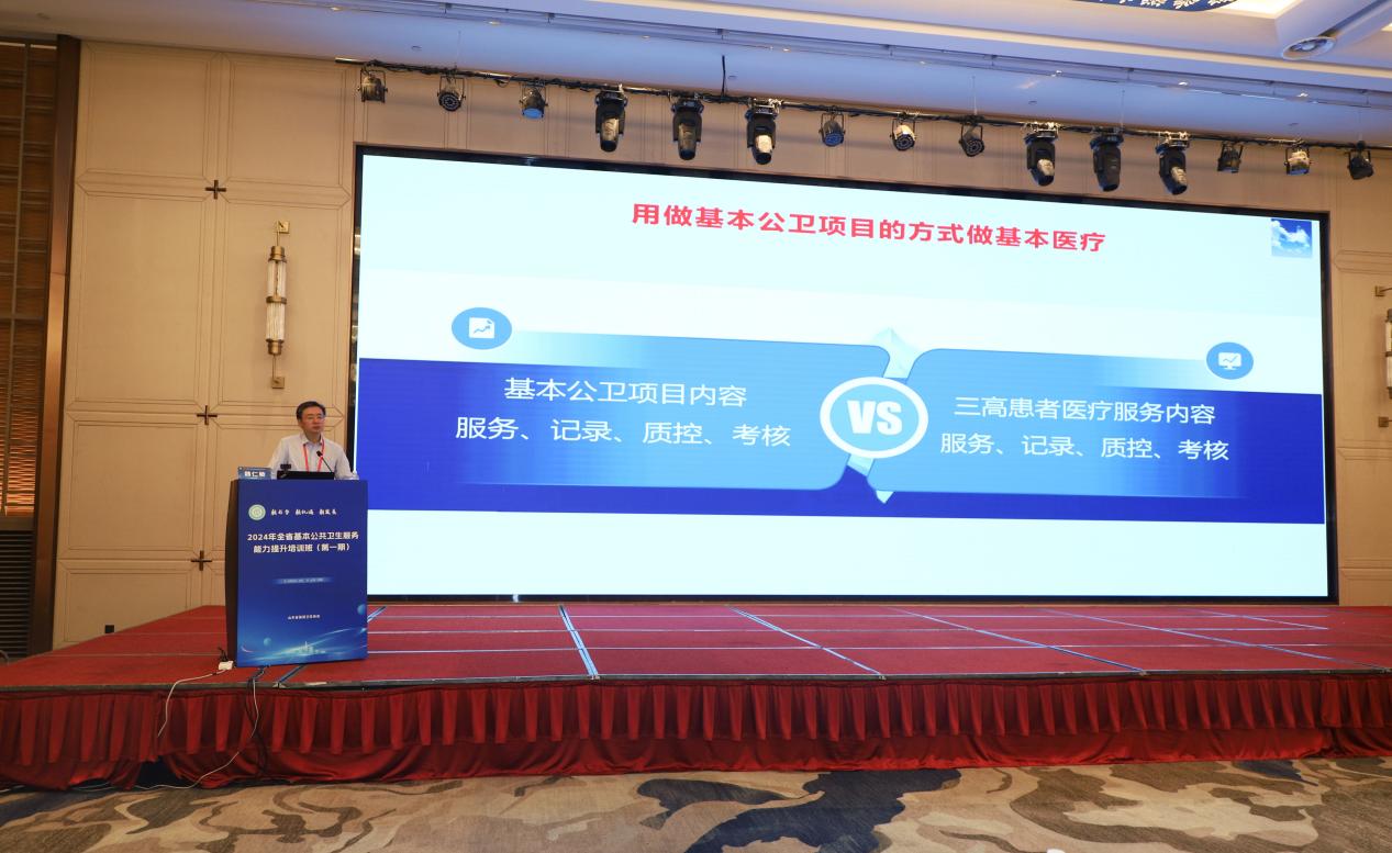 耿杰主任代表济南市卫生健康委员会,向培训班的顺利举办表示热烈祝贺,他表示近年来济南市积极推动“以基层为重点”的工作方针在卫生健康领域全面落地,不断加强基层卫生健康治理体系建设,提高基层防病治病和健康管理能力,全市基本公共卫生服务项目得到有效落实、家庭医生签约服务工作提质扩面、县域医共体建设有序推进,希望大家以此次培训为契机,进一步提升基本公共卫生服务质效,开发基层医防融合的新质生产力!