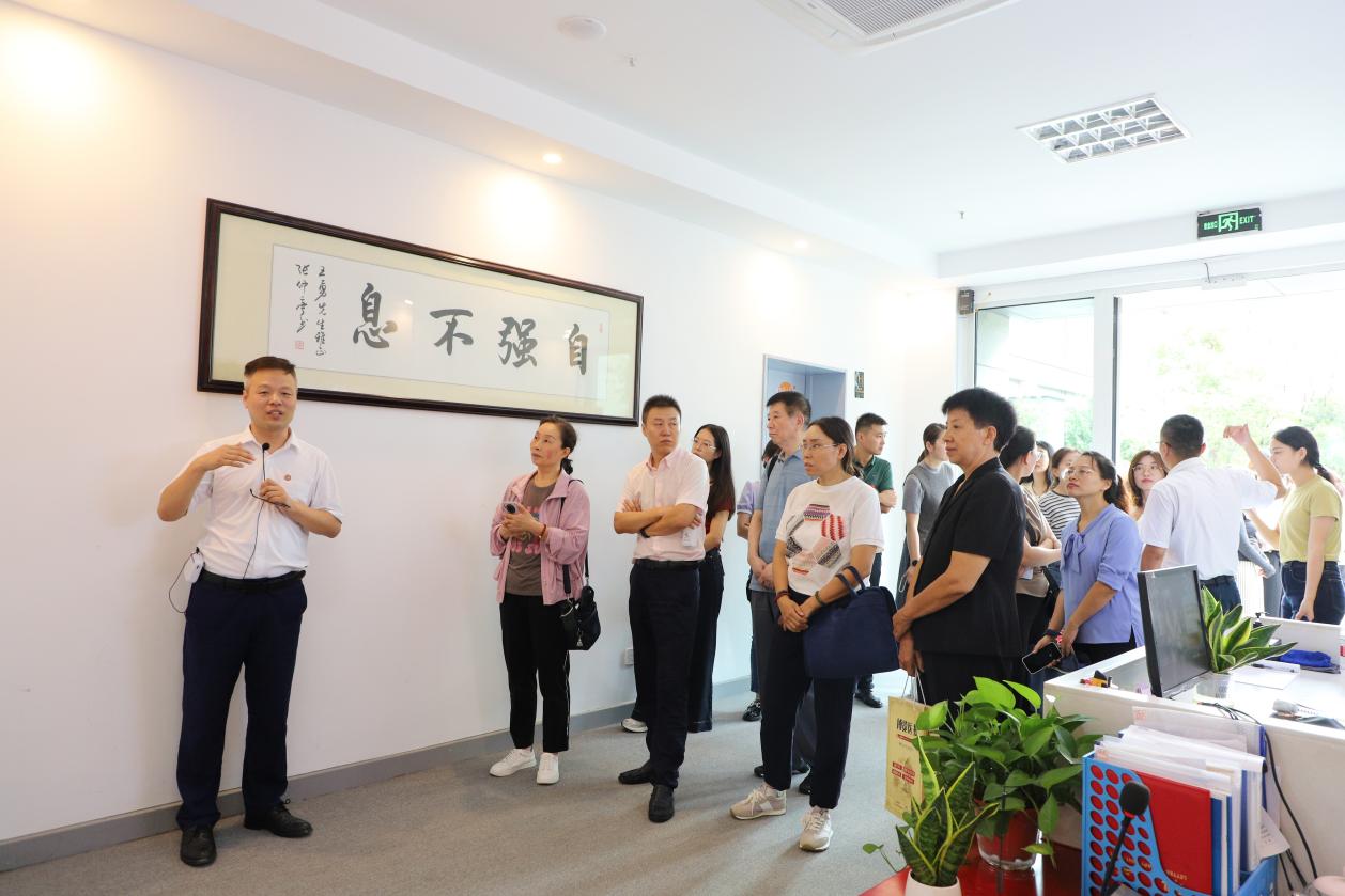 考察期间,在集团执行董事王兴法的带领下,培训班一行先后参观了麦德森党群活动室以及各子公司,对集团旗下档案数字化、史志出版、医药健康、中医药大数据等业务进行系统了解。