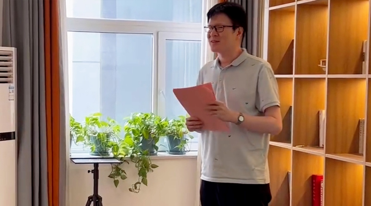 仁美志愿者孙文龙诵读静如词《卜算子•<一天一诗集>编著有记》
