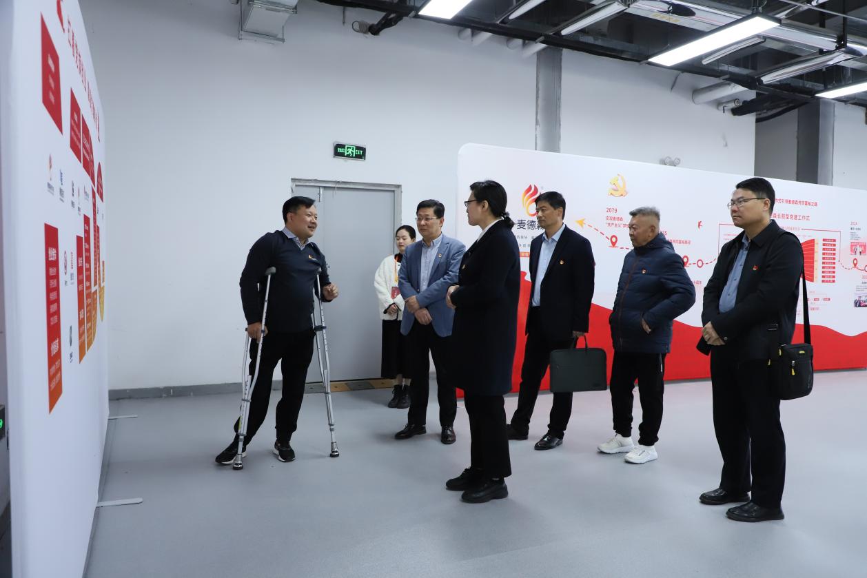 活动中,在王勇书记的引导与讲解下,山东中医药大学各党支部一行对麦德森党建活动室、“铭记百年党史,汲取奋进力量”中共山东百年历史图片展、“凤凰于飞,与党同行”——“两新组织”麦德森党建图片展等进行了参观,翻阅查看党员手抄党章、“三会一课”会议记录、“金点子”工程建言献策汇总簿等党建工作材料,听取了麦德森“长鼓型”党建工作式以及“创享工程1.0”改革方案,深入了解“12345678910——麦德森企业成长发展科学体系”与“1-12345678-12——麦德森人成长发展科学体系”。