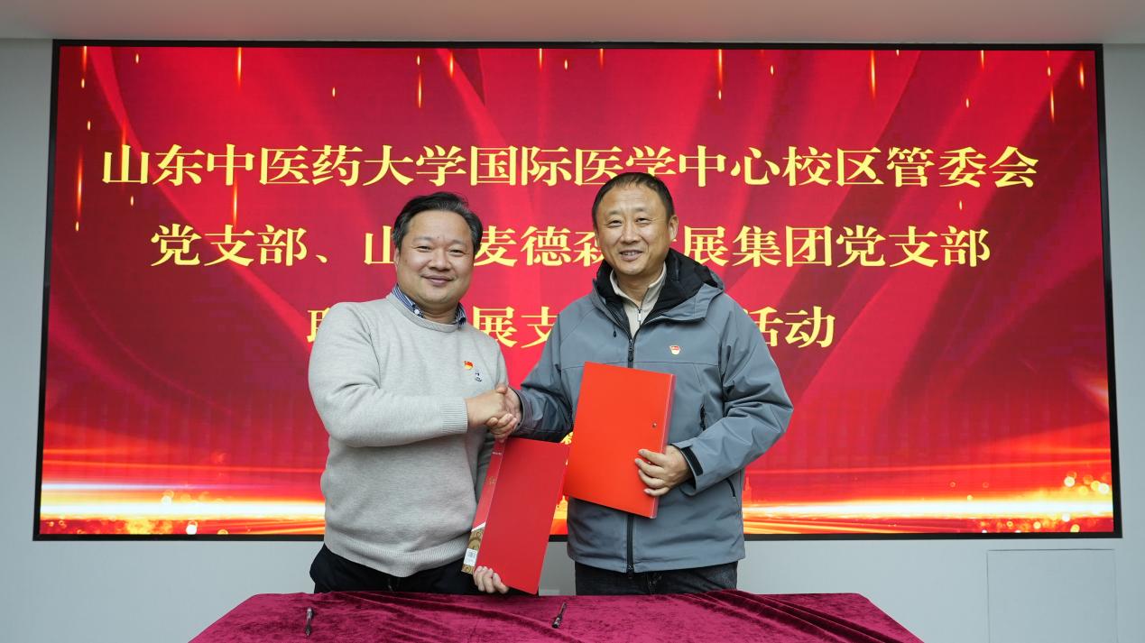 11月18日,山东中医药大学国际医学中心校区管委会党支部一行莅临山东麦德森发展集团,就集团党建及产业建设开展调研,并与集团党委签署党建共建合作协议。