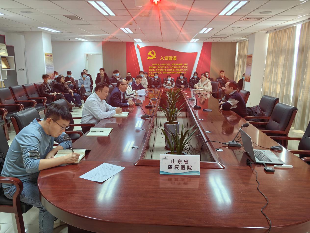 山东省康复医院副院长王锋出席,山东省康复研究中心第一党支部30余名党员现场聆听。