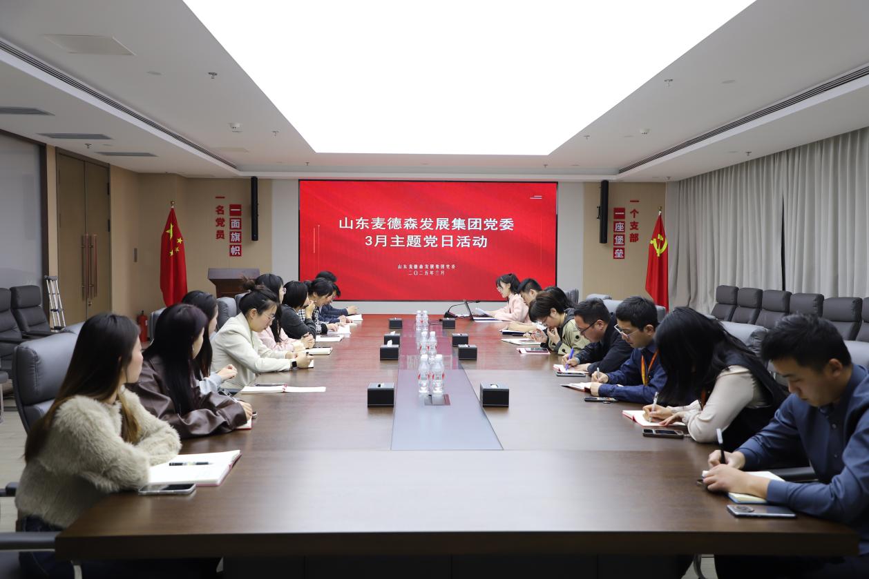 为贯彻落实党中央关于在全党开展深入贯彻中央八项规定精神学习教育的部署要求,持续增强党员的纪律意识、规矩意识,3月20日,山东麦德森发展集团党委在厚德楼会议室组织开展3月主题党日活动,集团20余名党员参加活动。