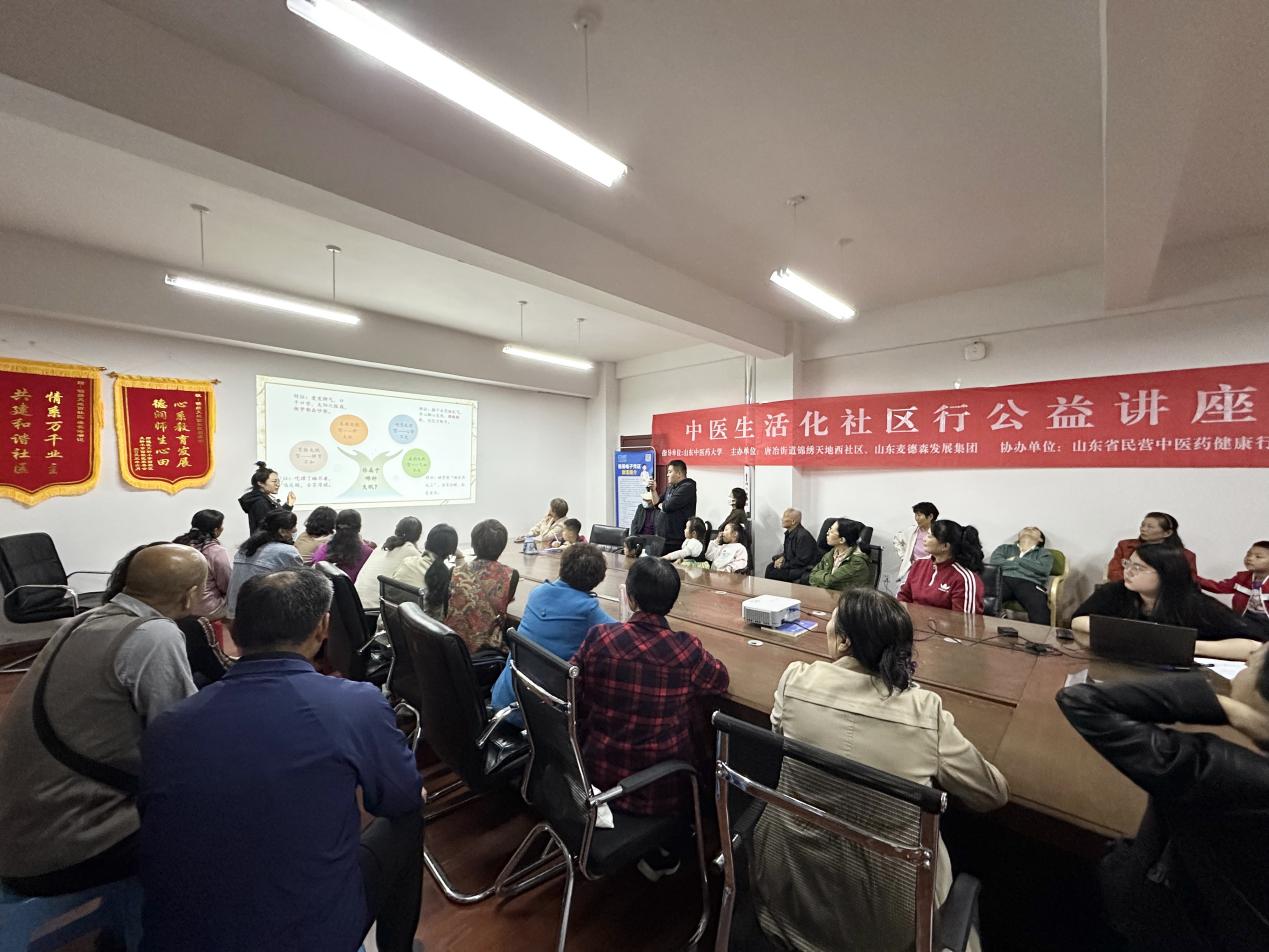4月10日,由唐冶街道锦绣天地西社区与山东麦德森发展集团联合主办,山东省民营中医药健康行业协会协办的中医生活化社区行公益讲座在锦绣天地西社区办公楼会议室举行。