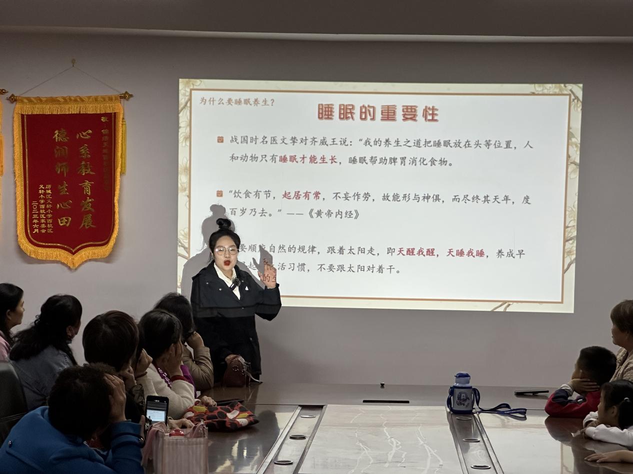 宣讲中,屈佳乐医师以《安眠有方,中医养生与睡眠健康》为主题,从中医养生理论出发,系统讲解了“什么是真正的养生”;随后,结合现代人常见的睡眠问题,深入剖析了睡眠养生的科学依据,指出优质睡眠对调节气血、平衡脏腑的关键作用;最后,针对失眠人群,屈医师详细介绍了助眠小技巧,如打造“睡眠仪式感”、床头放个安眠香囊及耳部安神操等,帮助大家摆脱失眠困扰。