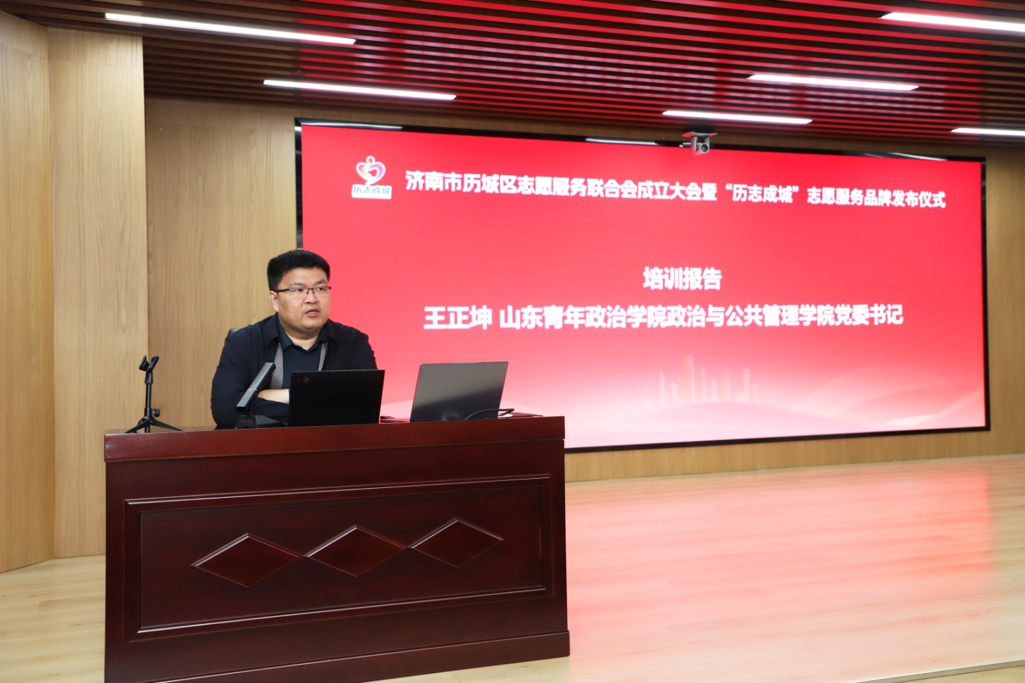 大会第二阶段,特别邀请到山东青年政治学院政治与公共管理学院党委书记王正坤作《志愿服务项目设计与管理》专题培训,从厘清志愿服务相关概念、评判志愿服务项目优劣、设计优秀志愿服务路径策略和志愿服务成效导向四个维度为会员们培力赋能。