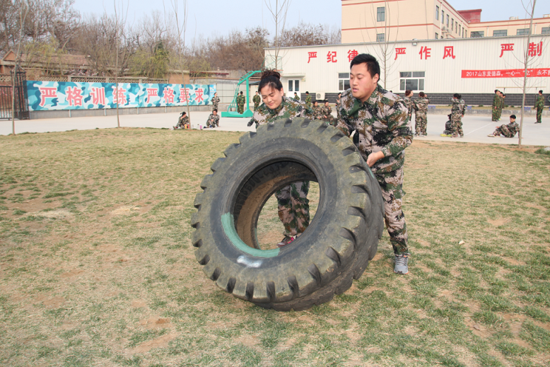 两人一组,搬动200多斤的大轮胎,100米的距离,每组员工都坚持下来,圆满完成任务。喜悦与荣耀,荡漾在他们的幸福的笑容里。