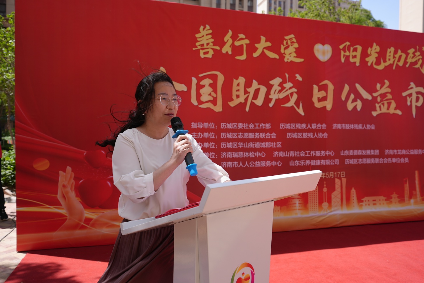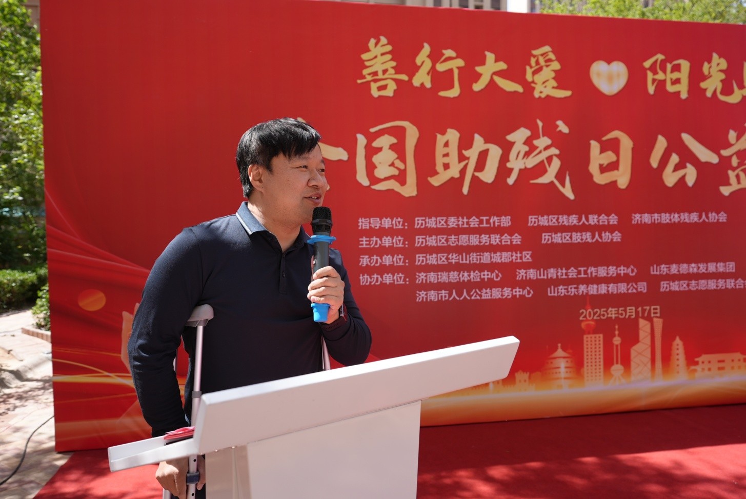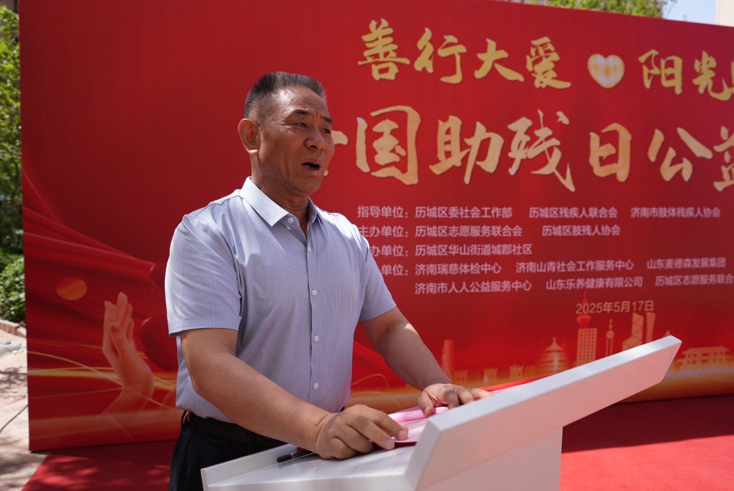 历城区志愿服务联合会会长,山东麦德森发展集团党委书记、董事长王勇出席,并现场宣读“全国助残日倡议书”,呼吁社会各界共同关注残疾人权益。