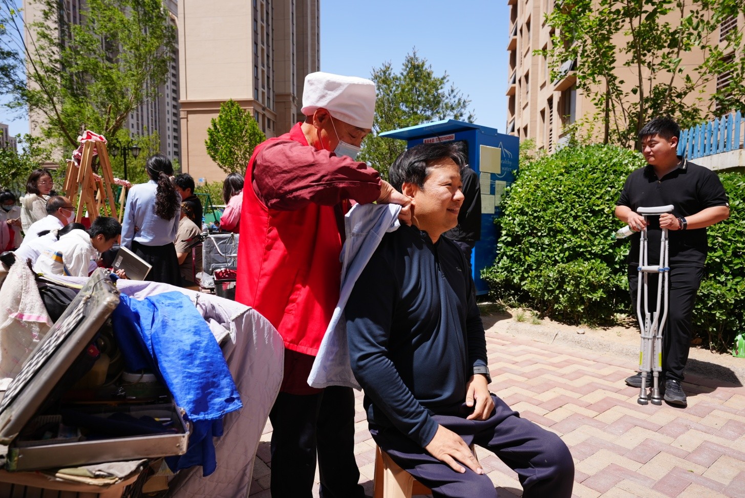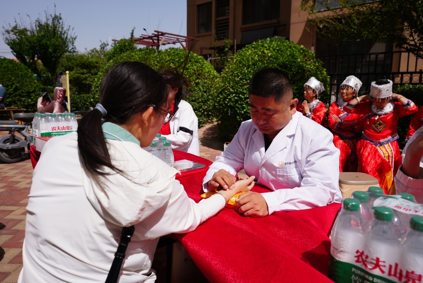 室外健康服务区,麦德森“盲手道”品牌医疗团队现场“义诊”服务;