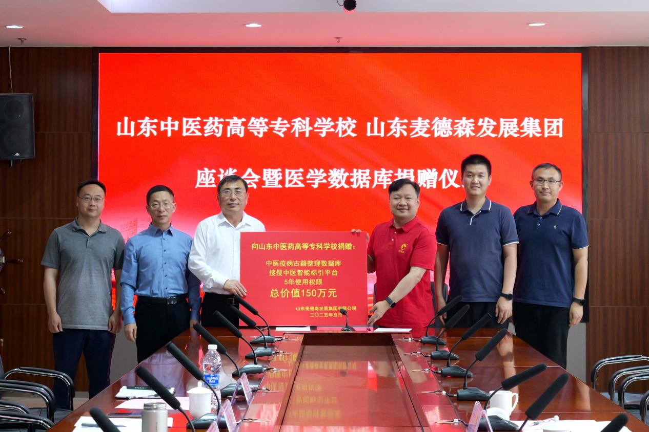 日前,山东麦德森发展集团与山东中医药高等专科学校座谈会暨医学数据库捐赠仪式在山东中医药高等专科学校综合办公楼第一会议室顺利举行。