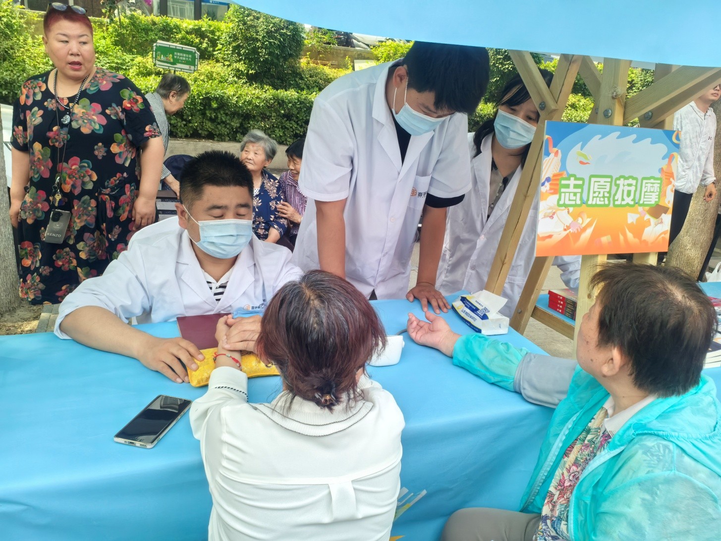 在裕园社区广场活动现场,一场涵盖体检大篷车、公交便民、房屋维修、义诊按摩、急救科普、消防应急、交通安全、全民阅读等项目的“志愿服务市集”火热展开。
