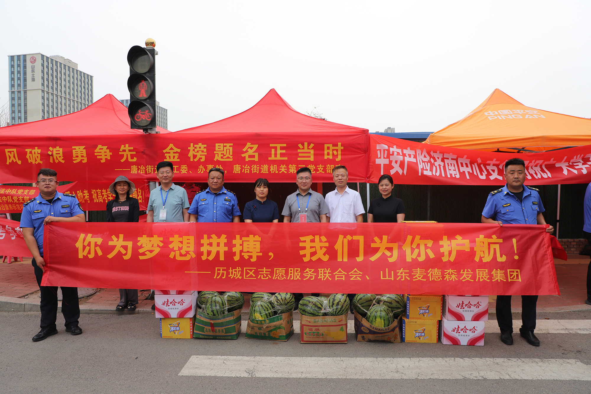 6月7日,为助力2025年高考学子顺利应考,传递社会温暖与关怀,山东麦德森发展集团、历城区志愿服务联合会在历城第二中学考点周边联合开展“爱心助考,梦想启航”高考季志愿服务活动。
