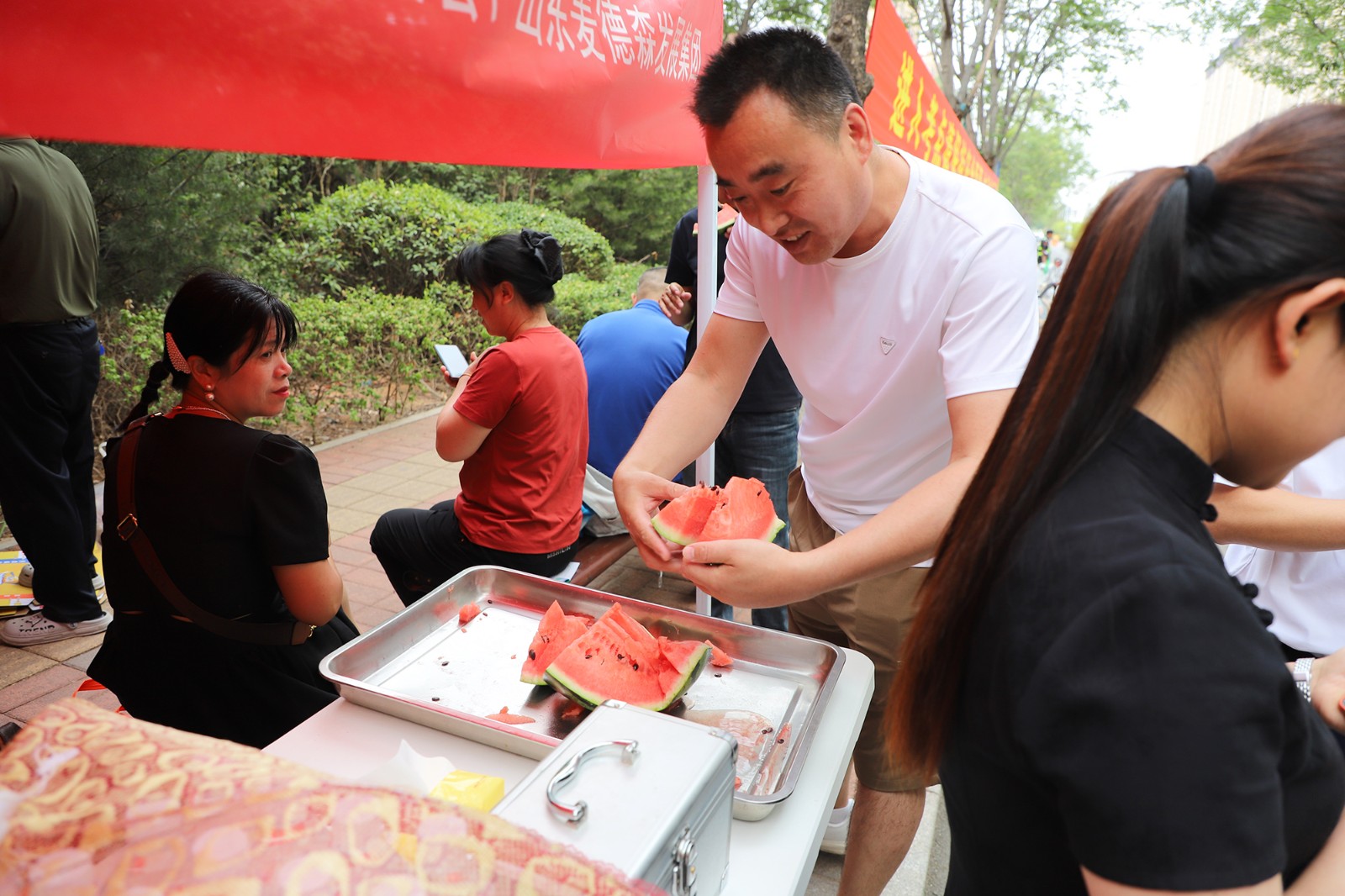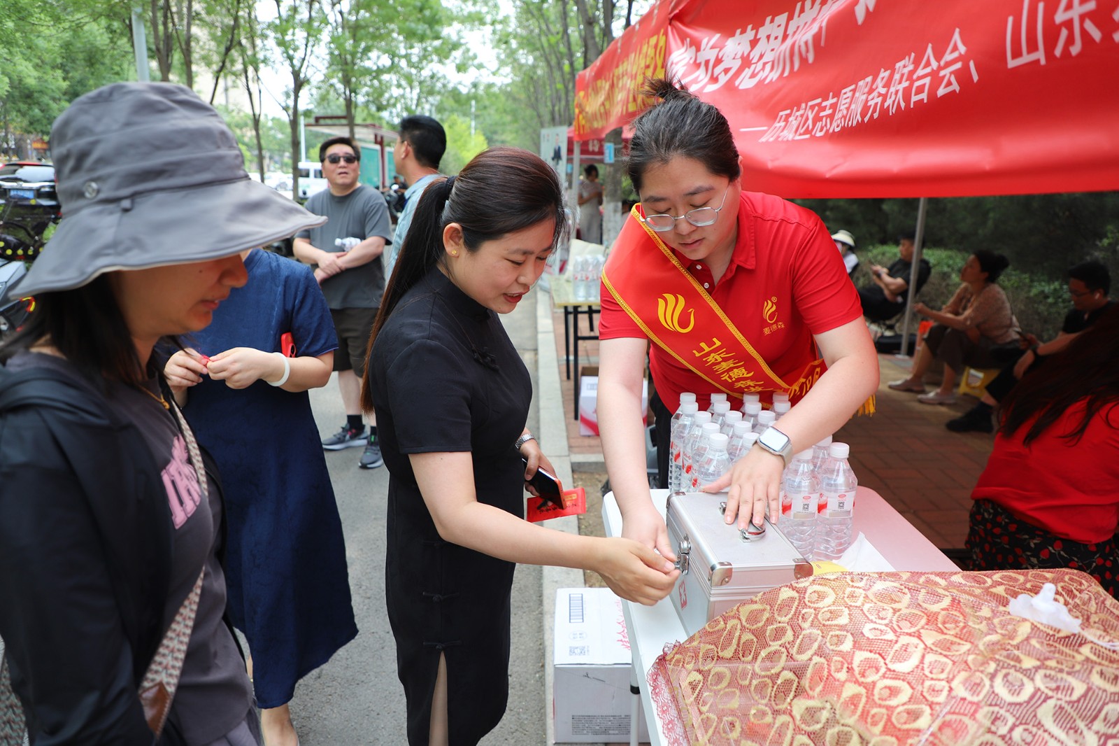 活动依托历城二中考点周边资源,在考点校门口指定区域,爱心公益摊位全天候开放,醒目的“你为梦想拼搏,我们为你护航”横幅成为考场外一道温暖风景线。现场设置遮阳帐篷、休息座椅等设施,为考生家长提供避暑纳凉的临时港湾。