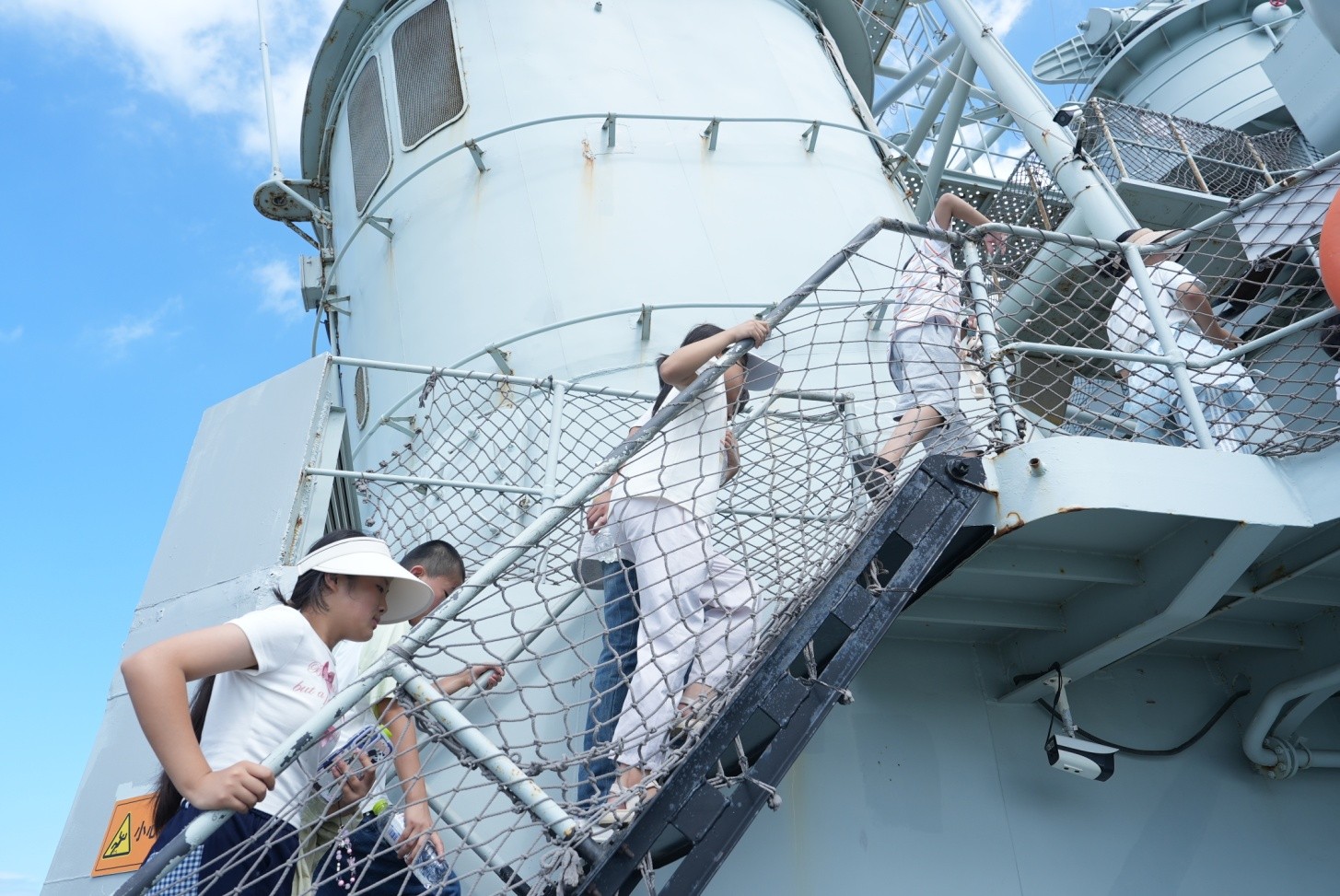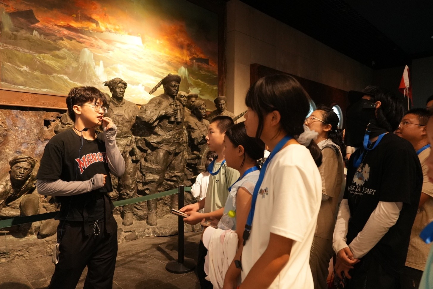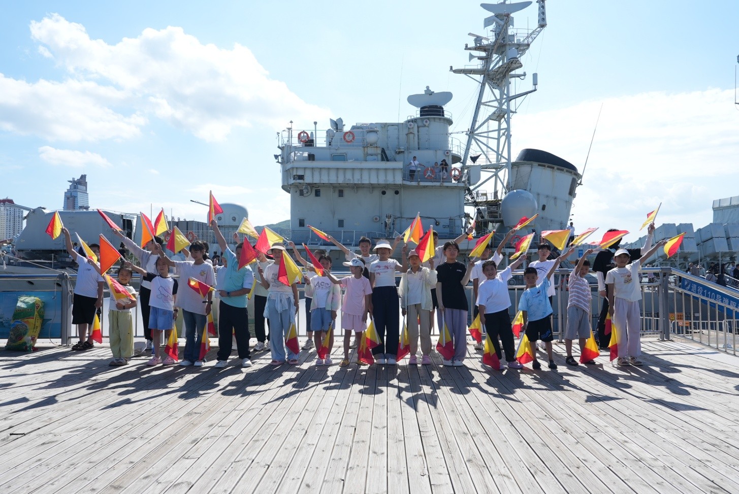 全天以刘公岛为核心,开启“海洋+历史”主题研学。上午,学员们在甲午战争陈列馆、英租威海卫历史博物馆中,通过实物展陈与现场教学,深入了解甲午海战的悲壮历史与近代中国海防的变迁;在鲸豚展馆,通过标本展示与科普互动,了解海洋生态保护的重要性。下午,登上退役海军110导弹驱逐舰,近距离感受国防力量,增强强国信念。傍晚的幸福公园打卡环节,夕阳下的海滨漫步为研学增添温情。