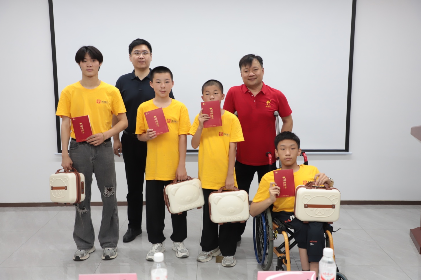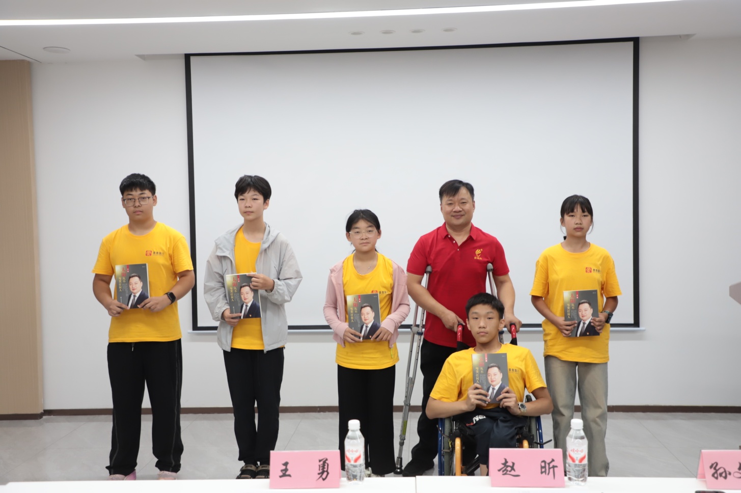 王勇书记为学员代表签名赠书,将个人传记《太阳从不亏欠任何人》送到每位学员手中,书中记录了他身残志坚、创业助学的故事,成为孩子们的精神礼物。随后,领导们为各学堂学员颁发《结业证书》和纪念品,一张证书、一份纪念品,凝结着5天的汗水与收获,也承载着未来的期许。