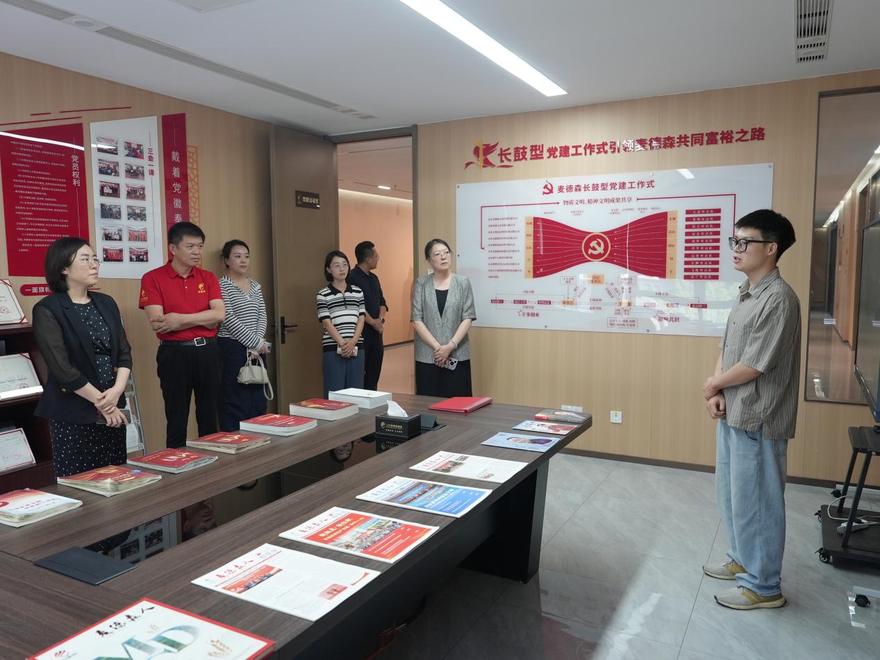 调研中,团委副书记武文涛汇报了集团青年和团员情况、团组织建设情况,张天君总经理详细介绍了麦德森经营发展的基本情况,他表示,麦德森高度重视青年工作,积极为青年和团员搭建成长平台,通过开展各类培训、主题团日活动和志愿活动,提升青年员工的专业技能和综合素质。目前,集团团组织架构完善,团员队伍充满活力,在企业的各项工作以及公益活动和志愿服务中发挥着重要作用,为共青团事业贡献青春力量。