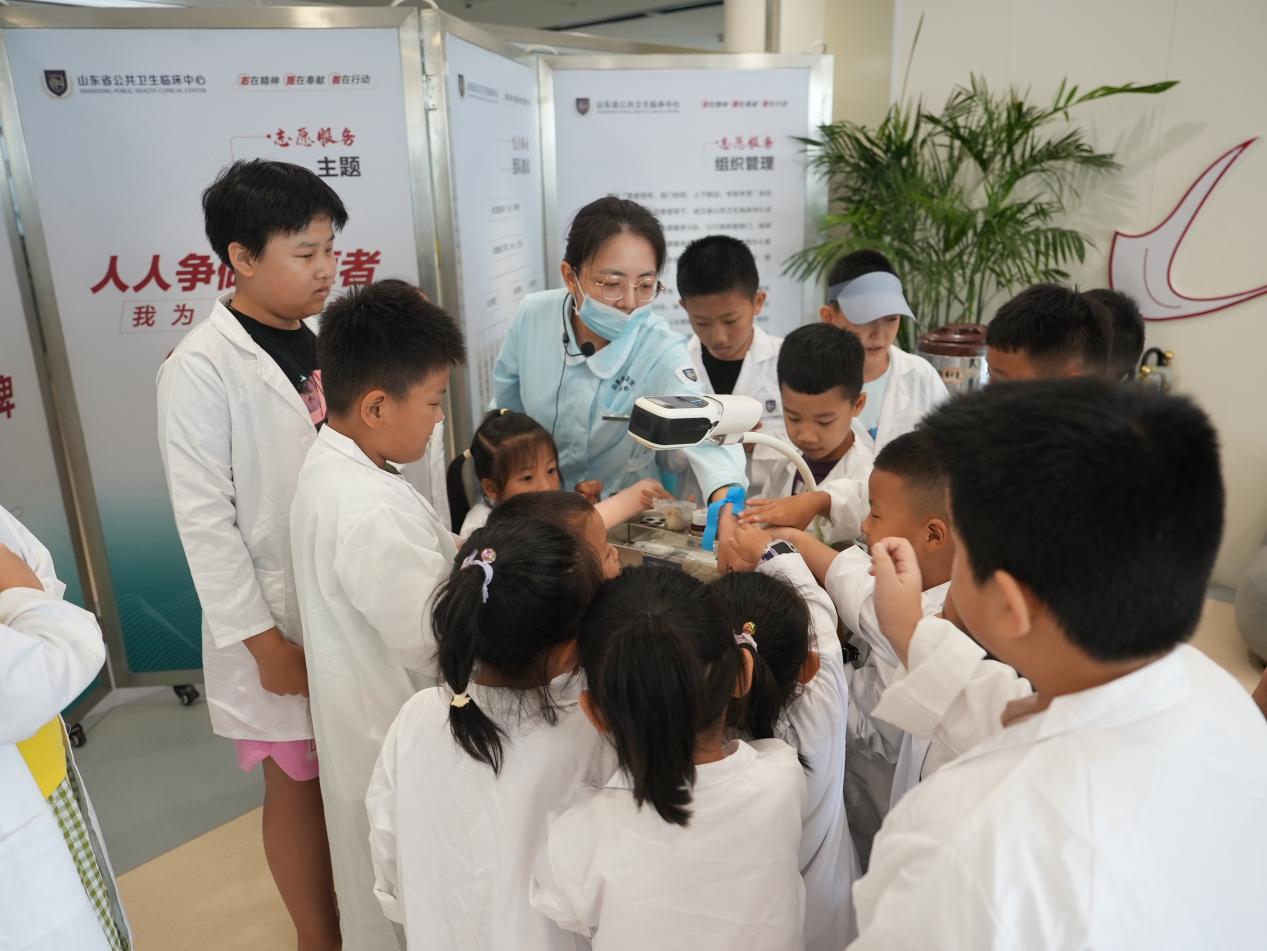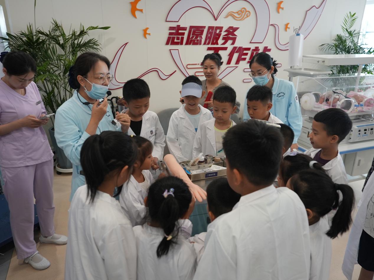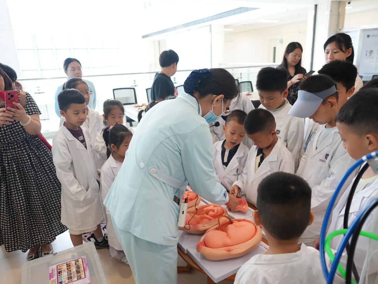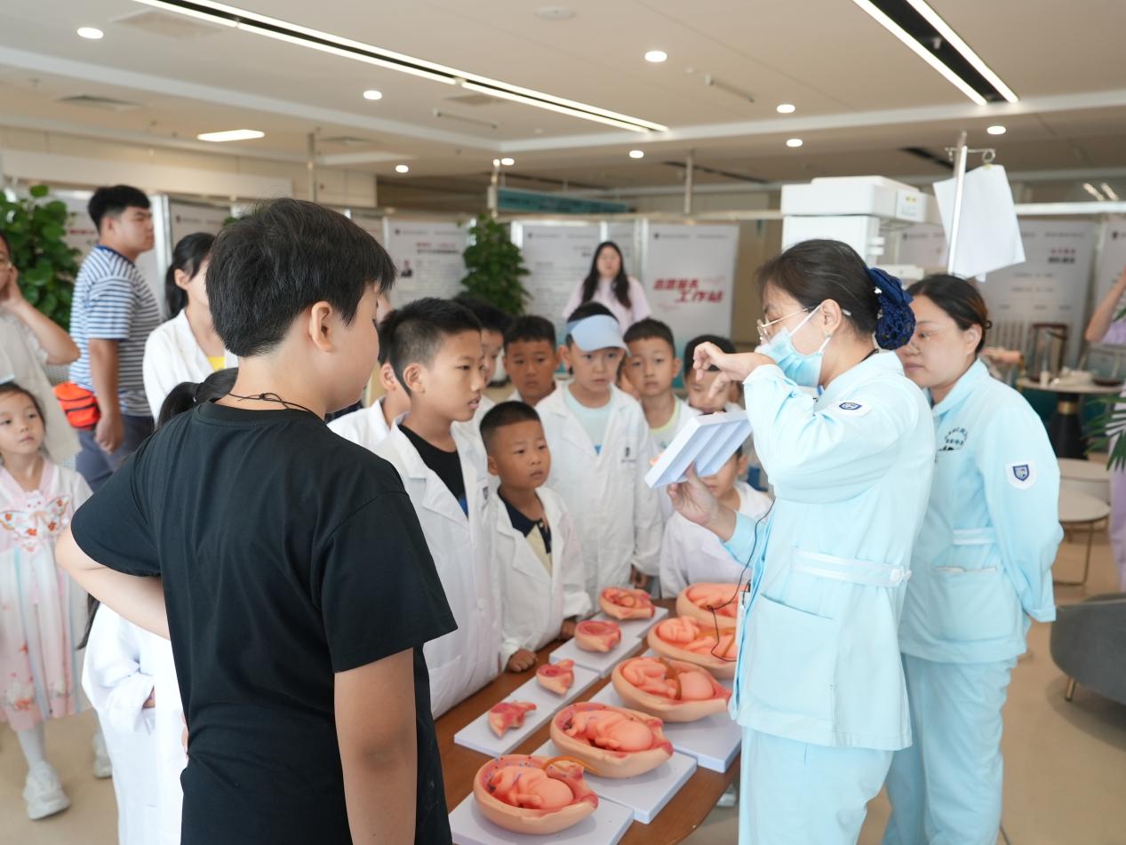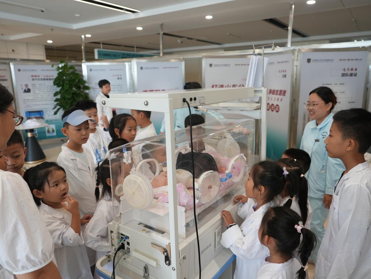 活动伊始,山东省公共卫生临床中心的工作人员以生动有趣的方式为孩子们拉开了研学的序幕。工作人员通过精心准备的模型和现场演示,向孩子们详细展示了生命的诞生过程。从妈妈怀孕时身体的微妙变化,到呱呱坠地后进入保温箱的温暖呵护,每一个环节都让孩子们听得津津有味、看得目不转睛。孩子们纷纷发出惊叹,对生命的神奇有了更深刻的认识,也更加懂得了妈妈孕育自己的辛苦。