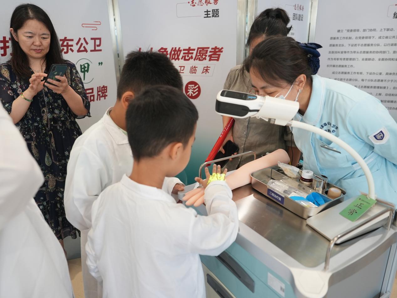 在了解了生命的诞生后,工作人员教给孩子们打针如何找血管。工作人员先给孩子们讲解了人体血管的基本分布和特点,然后通过现场模拟演示,让孩子们直观地看到如何在手臂上准确找到血管。孩子们个个跃跃欲试,在工作人员的耐心指导下,小心翼翼地用模拟道具进行操作。这个环节不仅让孩子们掌握了实用的生活技能,还培养了他们的观察力和动手能力。