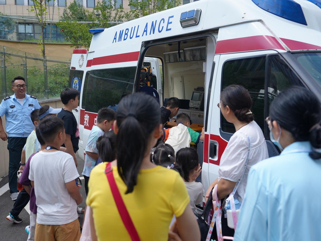 活动的最后一个环节是参观救护车。孩子们怀着好奇和兴奋的心情,排着整齐的队伍来到救护车旁。工作人员打开车门,向孩子们介绍了救护车内的各种设备和功能,如担架、除颤仪、氧气瓶等。孩子们一边听工作人员讲解,一边仔细观察。当得知这些设备在抢救病人时能够发挥巨大作用时,孩子们纷纷露出了敬佩的神情。