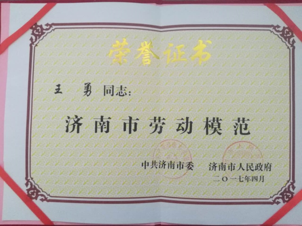 2017年4月28日下午,中共济南市委、济南市人民政府隆重召开庆祝“五一”国际劳动节暨劳动模范先进工作者命名大会,表彰为推动全市经济社会发展特别是在推进“453”工作中作出突出贡献的劳动模范和先进工作者。云博国际官网董事长王勇获得“济南市劳动模范”荣誉称号。