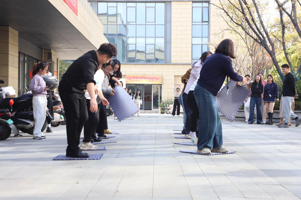“过河搭桥”现场,队员们巧妙铺“桥”、稳步前行,展现了智慧与协作的力量。