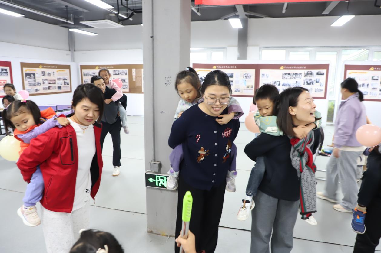 “扯尾巴-亲子游戏”中,家长与孩子配合默契,笑声不断。