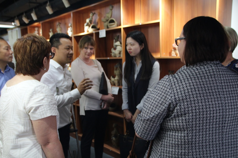 This morning, a Delegation from Government of South Australia came to visit MDC Group. The group chairman, Mr. Wangyong introduced the main businee of MDC Group to the delegation, took the delegation to visit the calligraphy training class for disabled people and Arts gallery, which artworks are made by disabled people. The Delegations inspected the artworks admiringly. After the visiting, Mr. Wangyong and delegation members talked about the disabled cause duringChinaandSouth Australia. The head of delegation, Mrs. Muriel Kirkby introduced each members and their jobs to Mr. Wangyong. Mentioning about exchanging study duringChinaandAustralia, Mr. Wangyong showed great interest and introduced that the overseas education company affiliated to MDC Group would establish cooperation relationship with them.