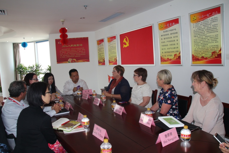 2017年5月9日,澳大利亚南澳州社区及社会包容部残疾人服务处主任缪丽尔·柯比一行6人在省残联和市残联领导的陪同下莅临我集团参观指导。集团董事长王勇、山东麦德森出国留学服务有限公司总经理田凌陪同考察。