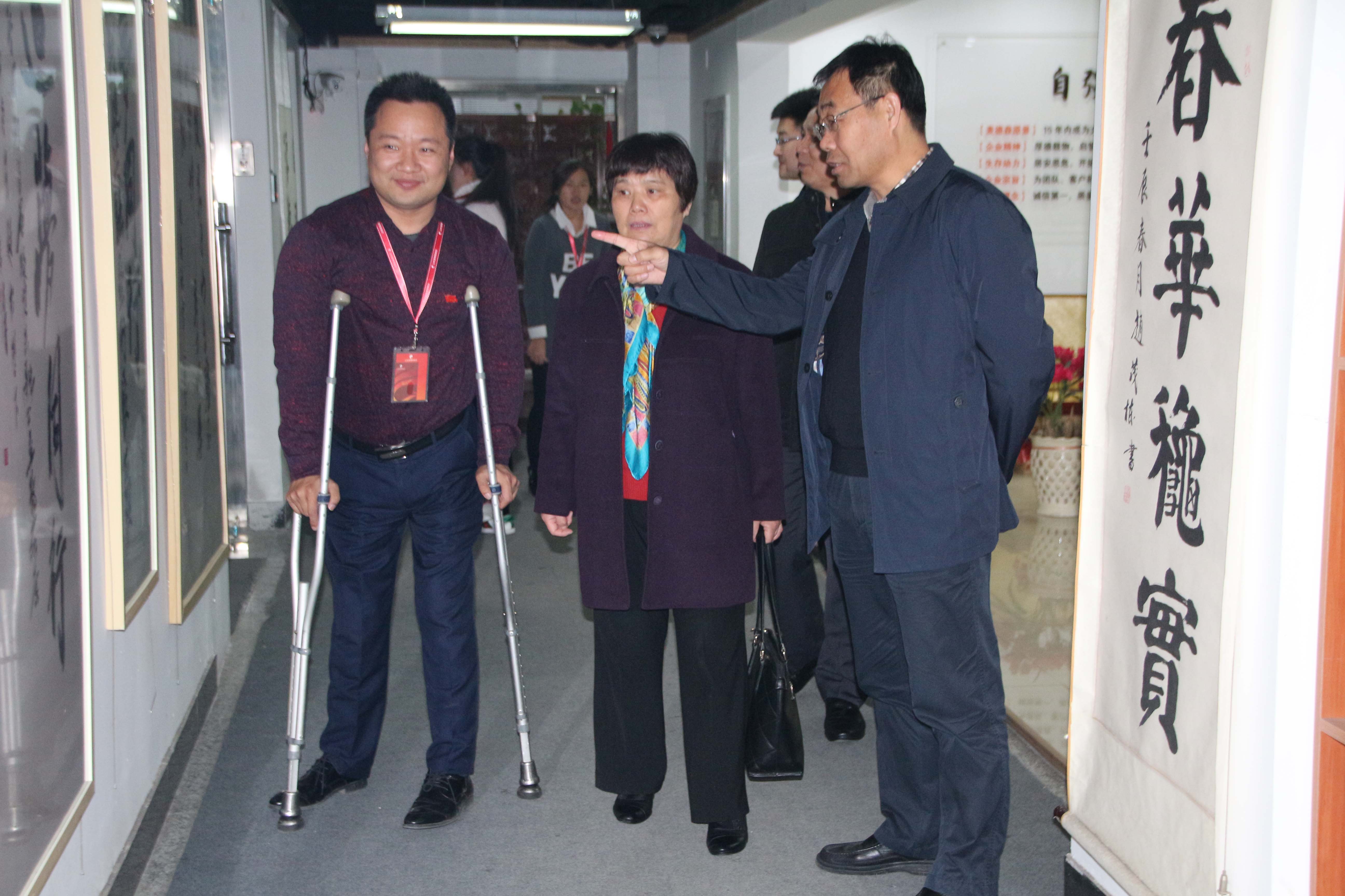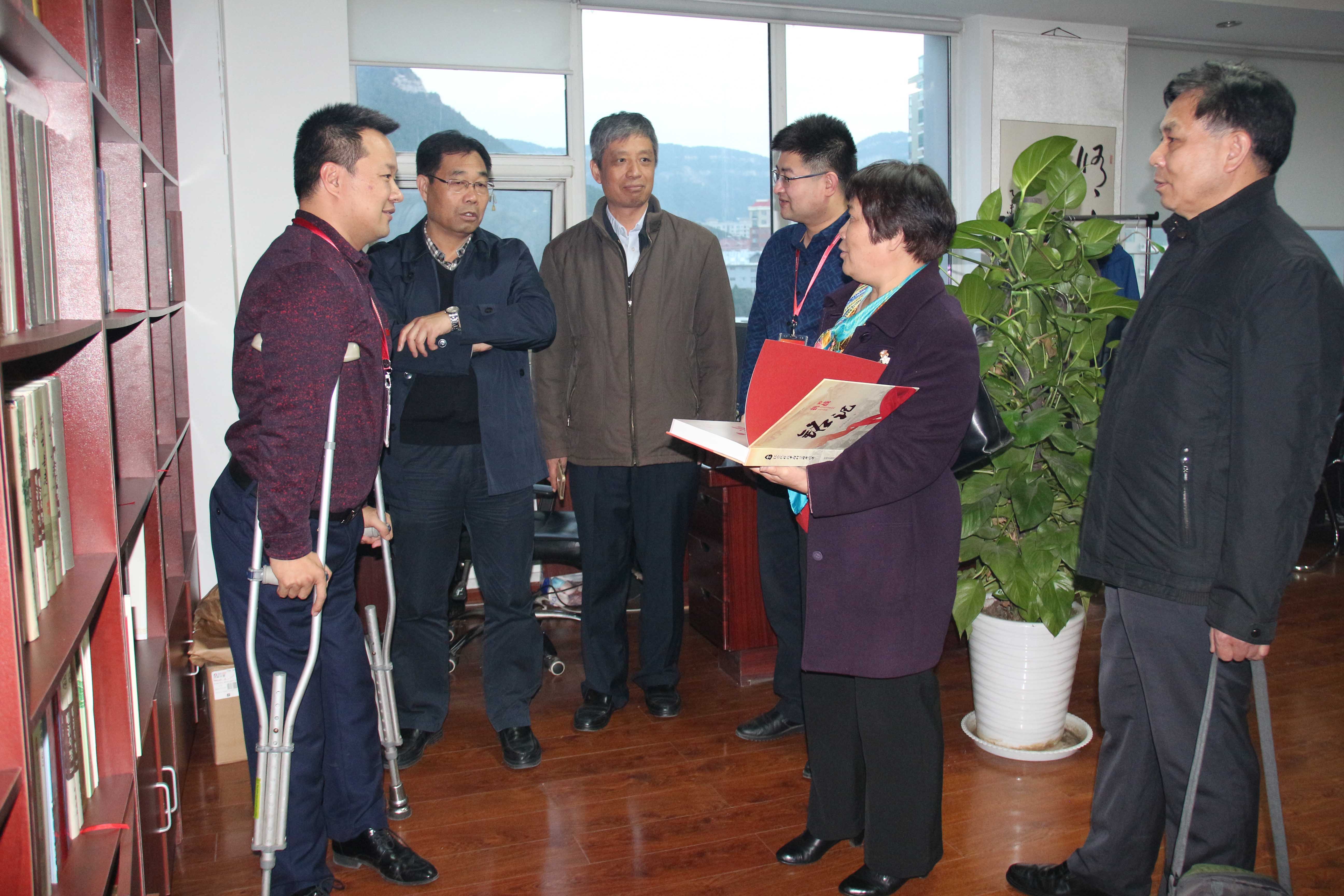 在王勇委员的引领下,领导参观了我集团的励志文化长廊、多功能活动室以及各职能部门,对我集团“以人为本,关爱员工”的理念表示认同和赞扬,为我集团大力发展残疾人文化事业的决心点赞。在参观的过程中,史志事业部的大书架吸引了领导们的目光,马素珍巡视员和刁仕军主任的工作经历使他们对志书拥有比较深厚的感情,殷切嘱咐史志事业部的全体成员,修志工作“功在当前,利在千秋”,一定要大力协助有关部门,编纂出一部部富有时代气息、彰显地方特色、经得起历史检验的精品佳志,真正起到“修志问道,以启未来”的作用。