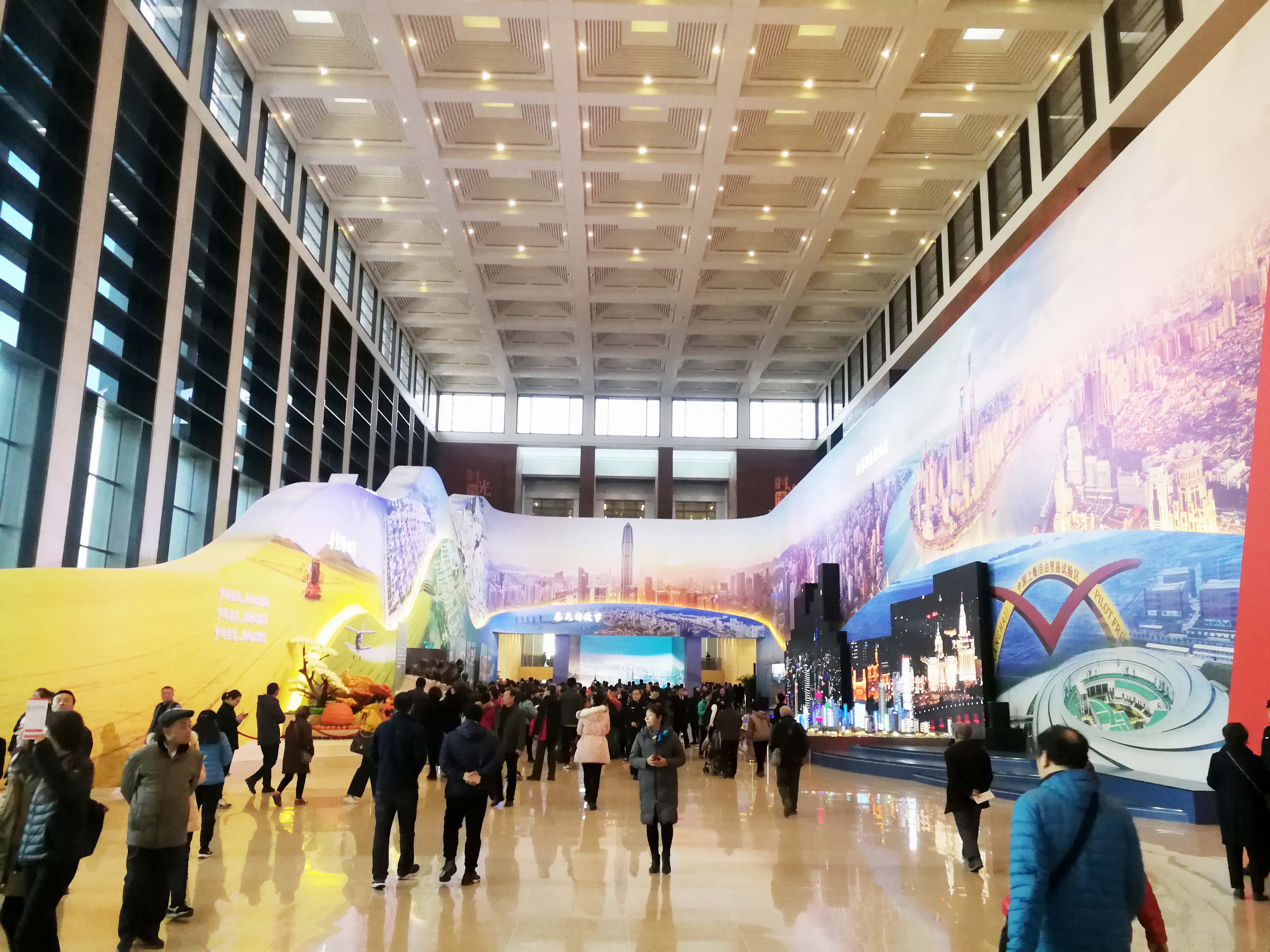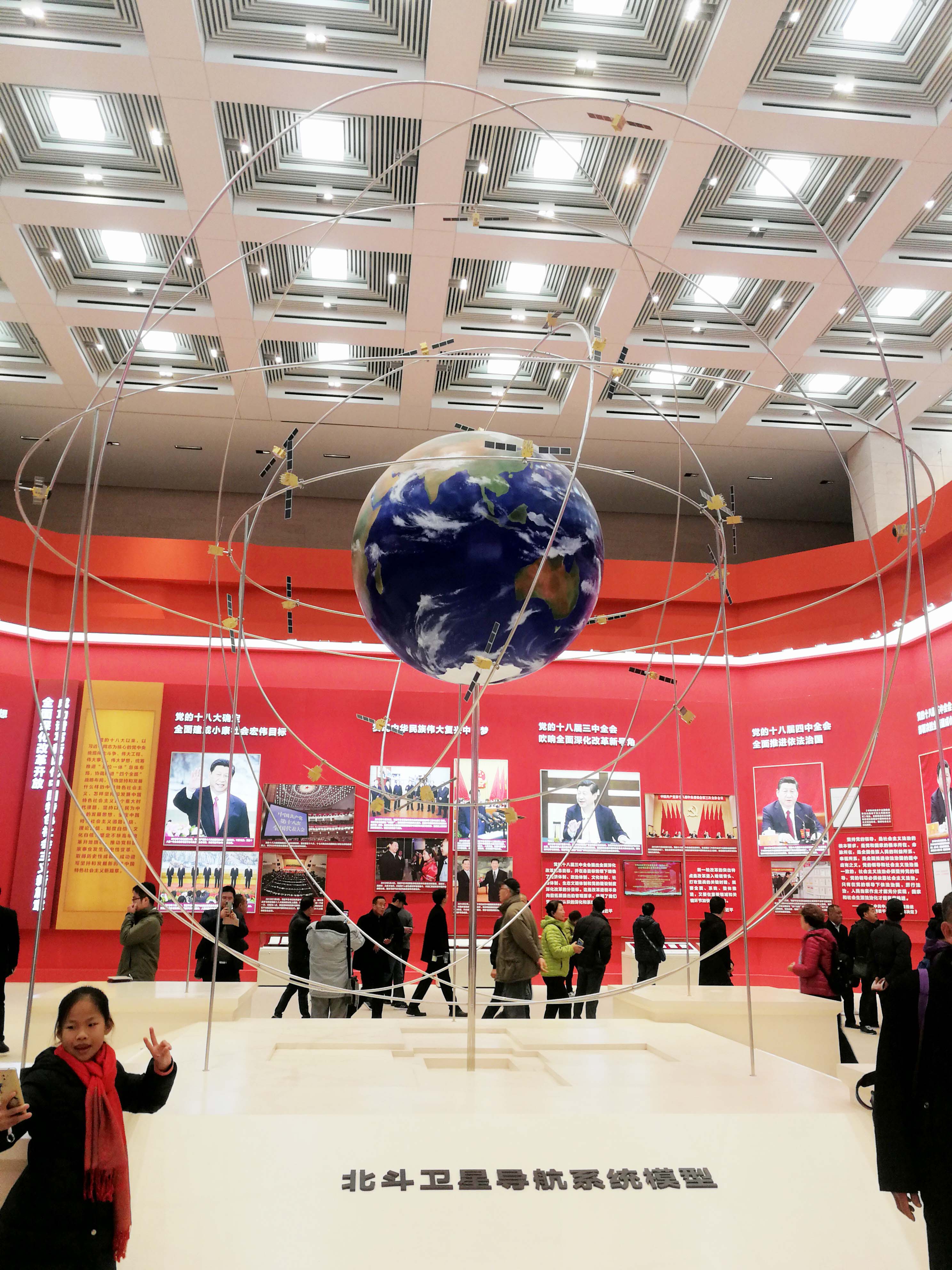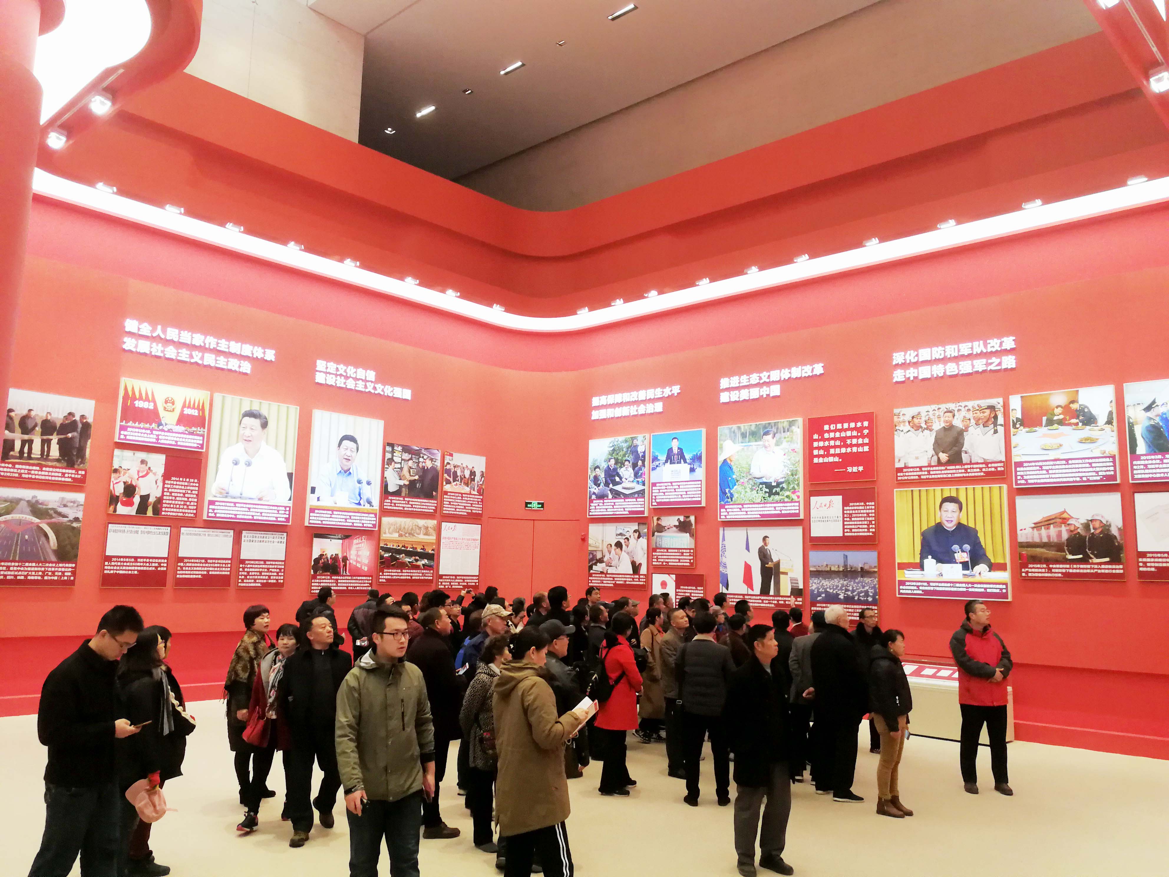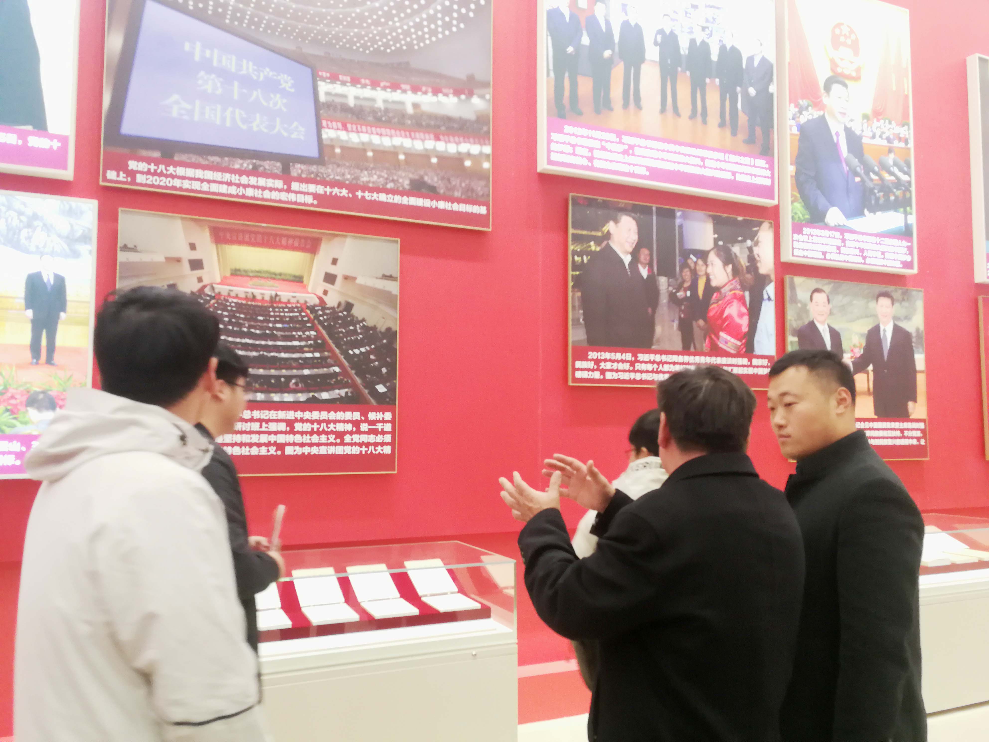 虽然已经是开幕后的第9天,国家博物馆的进口处已经早早排起了长龙,微寒的天气也挡不住人们想近距离感受祖国40年来日新月异的热切心情。我们进入大厅的展区“可上九天揽月,可下五洋捉鳖” 12个大字格外醒目。大厅两侧,长征系列火箭模型、天宫号空间站模型和蛟龙、海龙等深海探测装备模型陈列在展厅中,大气恢宏,引来众多人的驻足观看,民族自豪感油然而生。接下来,我们相继参观了党的十一届三中全会等反映党中央推进改革开放重大时间节点、重大历史事件、重大决策部署的历史照片以及农业改革、服装变迁、交通发展等等。作为一位充分见证改革开放40年累累硕果的同志,桑守正副书记从自身的经历,为两位年轻同志讲述起每一个老物件背后的故事、每一处巨变凝聚了多少人的心血!40年来,经济建设、政治建设、文化建设、社会建设、生态文明建设历史性成就与变革,为中华民族伟大复兴的中国梦插上腾飞的翅膀。