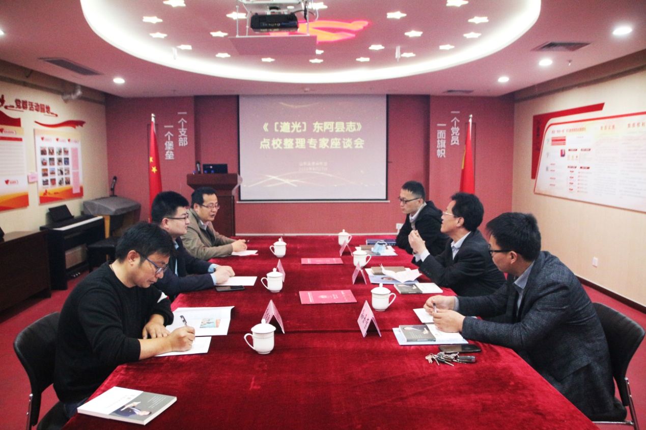 随后,张冬青主任等一行会同我集团特邀的山东大学、山东师范大学的史志整理和研究专家,在我集团党群活动室举行了《(道光)东阿县志》点校整理专家座谈会,双方围绕《(道光)东阿县志》的点校整理的整体思路、时间进度要求,以及断句标点、装帧设计等方面的具体细节等方面的内容进行了深入而细致的探讨和研究。