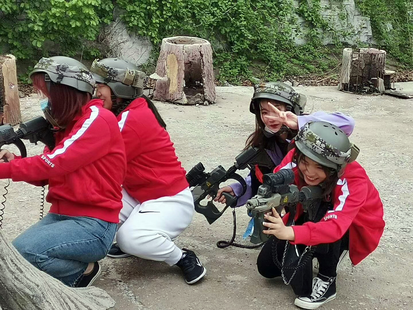 活动中,大家亲身体验了真人CS作战。在教练的指导和安排下,红蓝两队激烈的对攻战就此展开。大家在枪林弹雨中进攻、掩护、瞄准、射击、冲锋,每个人体会到了自己的价值和团体作战的力量,亲身体验到团队合作作战、共克难关的喜悦和激情。
