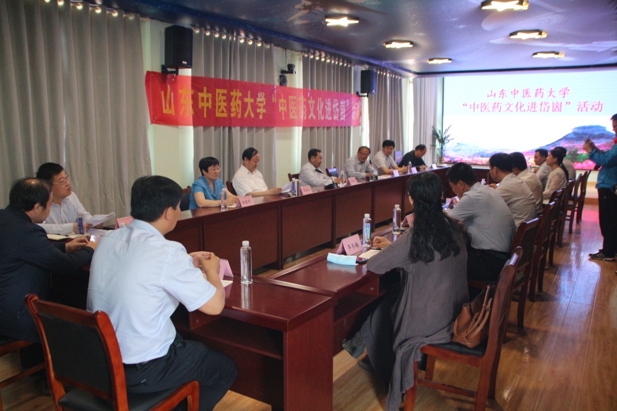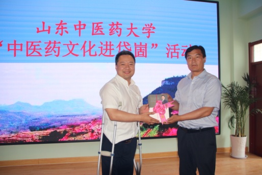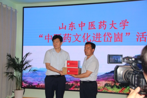 在岱崮中心学校小学部会议室,山东中医药大学“中医药文化进岱崮”活动捐赠及揭牌仪式隆重举行。