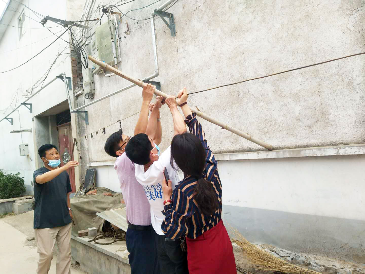 针对上述现象,突击队队员们积极协助此次整改工作小组对村居的整改,将个别居民家门口的系绳进行拆除,门口摆放的杂物搬运至各家庭院中。