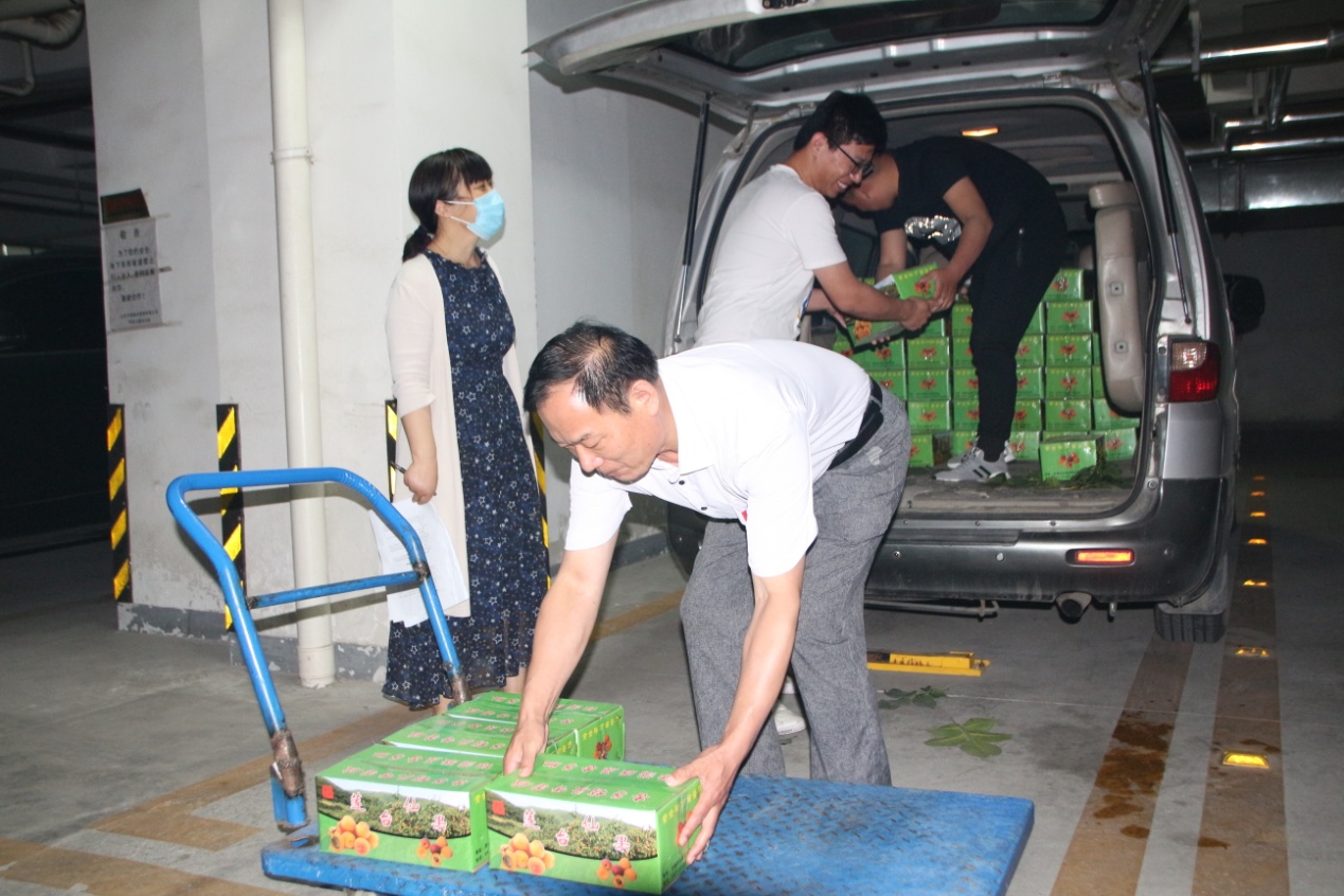 采摘工作结束后,6月6日,集团工会工作人员将又大又甜的杏发放到每位员工手中。