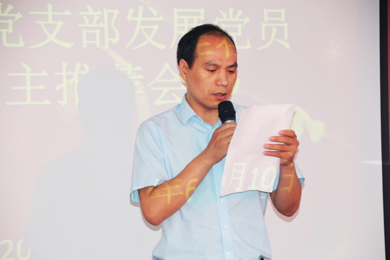 会议听取了入党积极分子和党员发展对象候选人宣读入党申请、培养联系人发表培养考察意见,后通过支部党员、群众代表进行无记名投票表决,和现场唱票统计:同意推荐张永华、闫金峰、黄娜为党员发展对象;同意吸收黄亚平、王金波、张晶华、宋小维、王瑞5名同志为新一批入党积极分子。