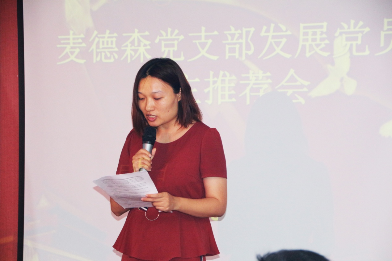 在随后召开的支部委员会议上,经讨论研究,同意以上推荐意见并形成支部决议,由支部书记王勇博士在会上宣读。会后将在集团公共区公示民主推荐情况,并按照组织程序报上级党工委备案。