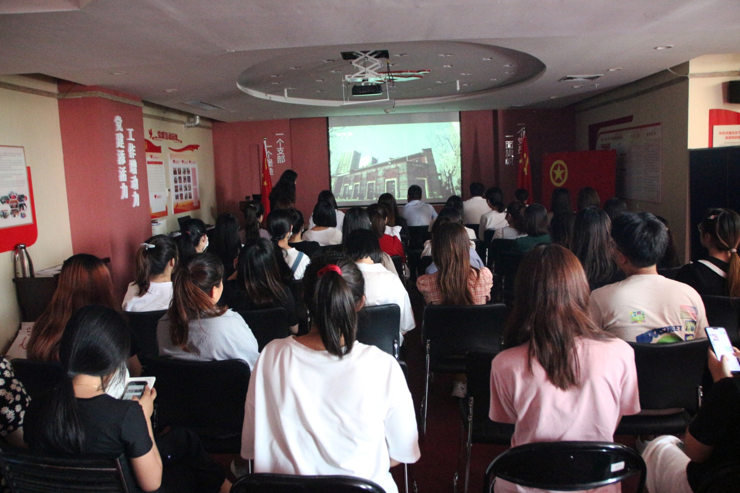 此次活动以观看《薪火相传——建党伟业》作为学习内容。视频中,展示了在1921年,十三名革命者成立中国共产党,到现在马上迎来中国共产党建党一百年,从最初的五十多名党员到现在成为承载着九千多万名党员的世界第一大党,近百年来,多少默默无闻的党员为国家牺牲、流血流泪,才成就现在共产党的辉煌,成就了中国的崛起与强大。