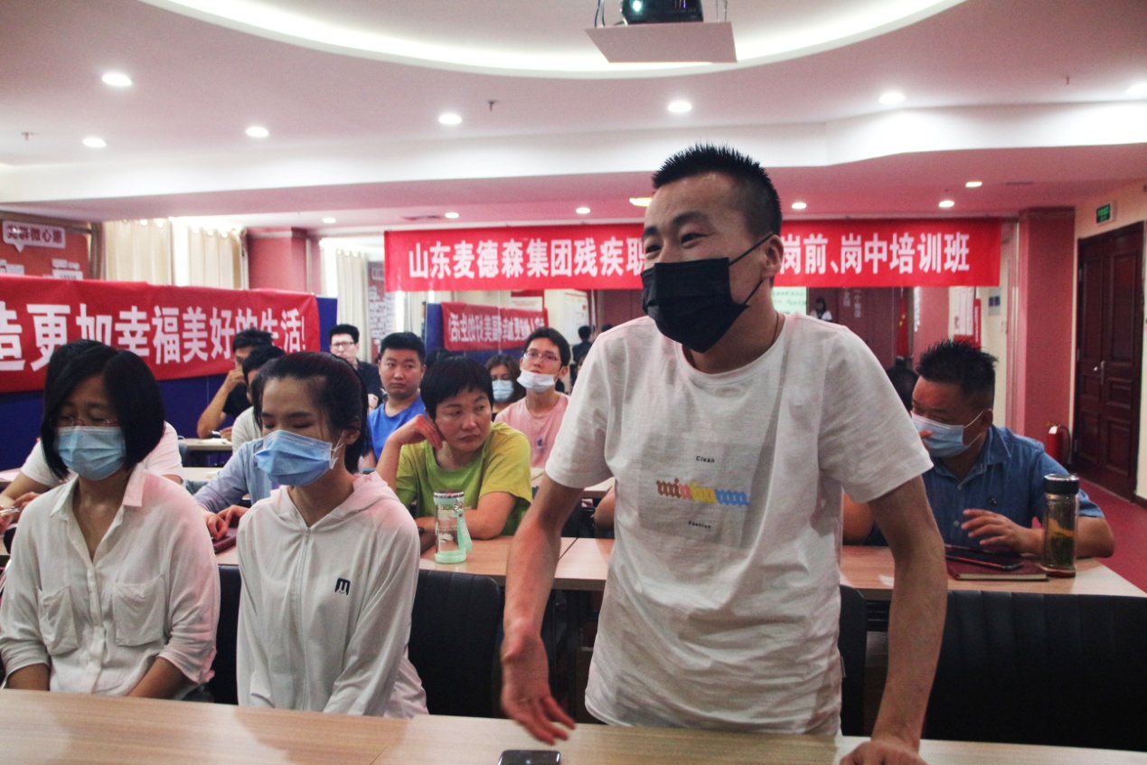 培训班开课前期,市残疾人劳动就业服务中心制定出适合残疾员工的培训教案,形成独特的培训教学体系。开班仪式上,集团党支部书记王勇博士、山东麦德森大学常务副校长常宜颖分别就《如何走向成功》、《心理学在职业中的运用》等课程为残疾职工进行了首期课程讲授。