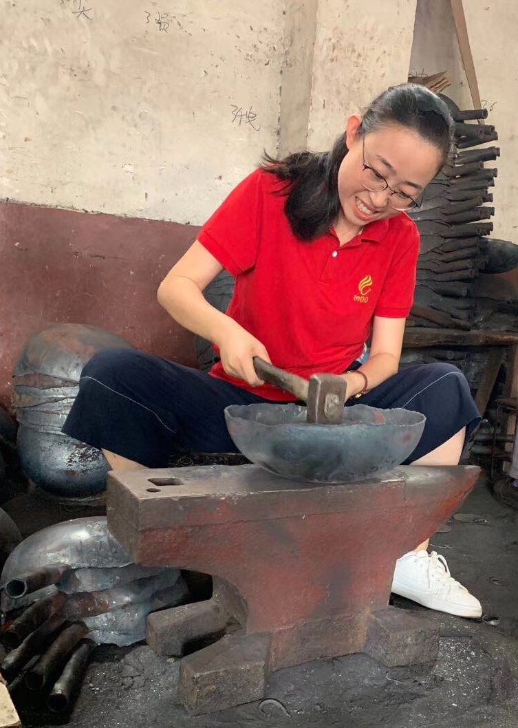 随后,天龙突击队走进章丘普集镇,探访网红章丘铁锅生产基地并体验“锻打三万六千捶”的铁匠精神。