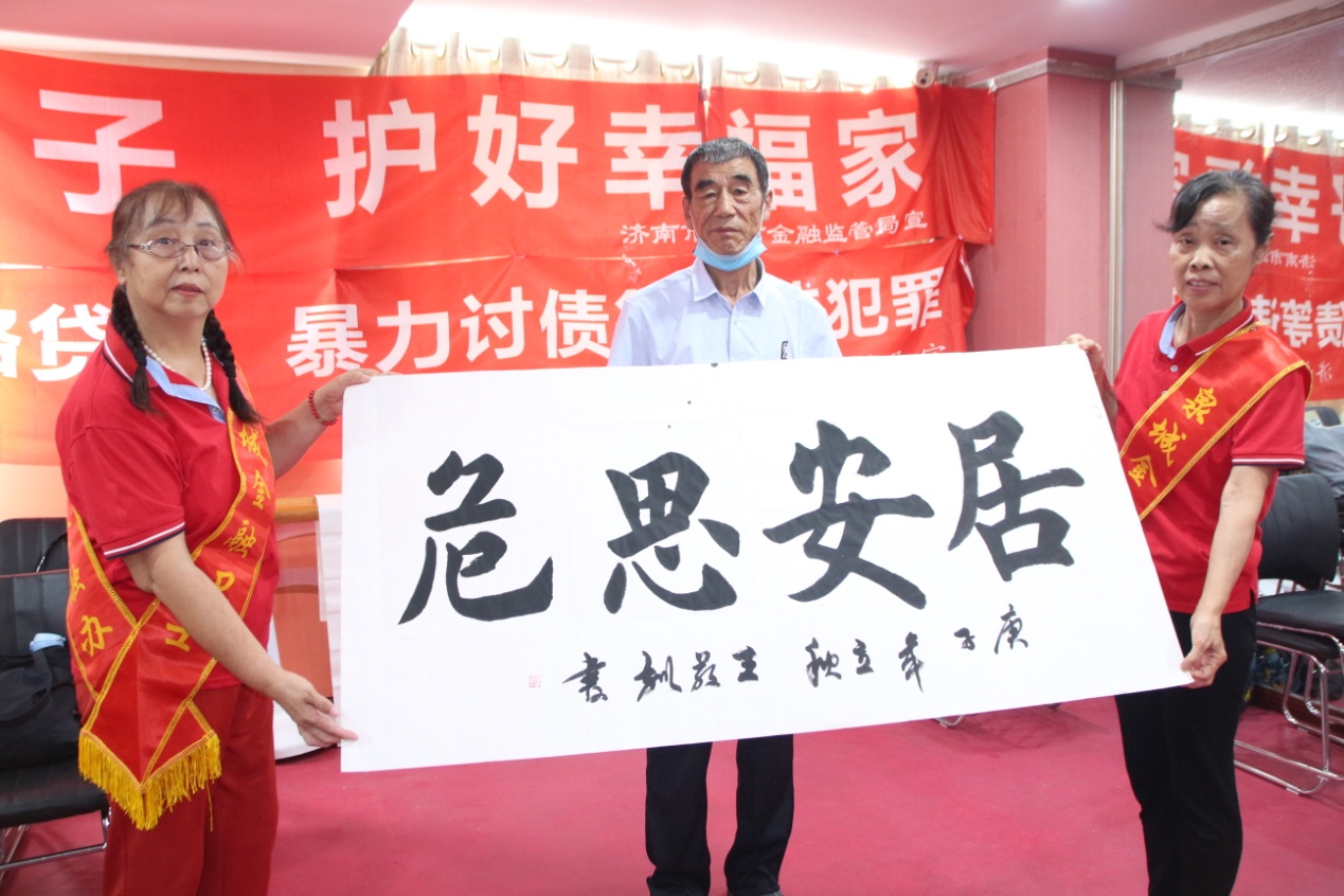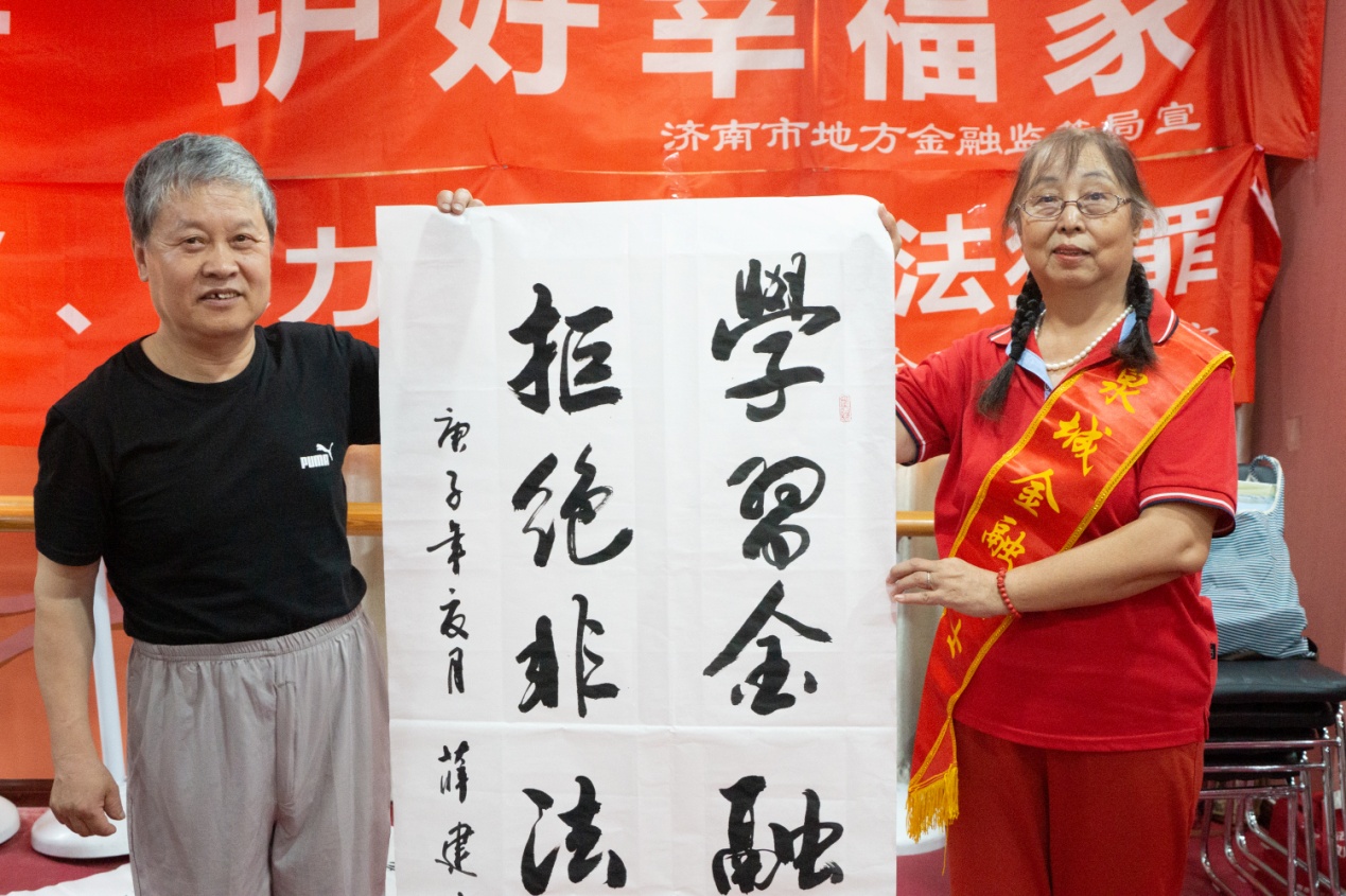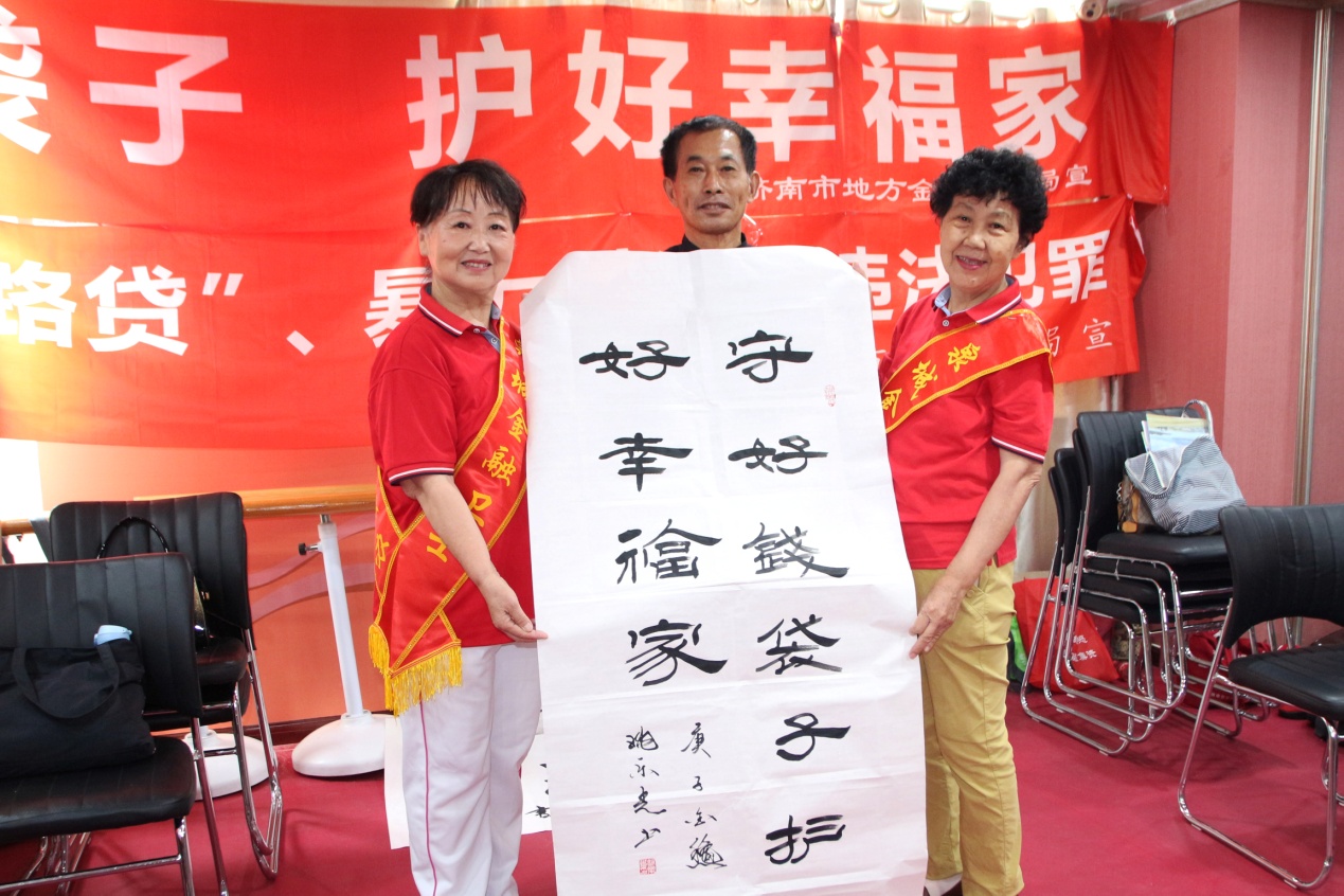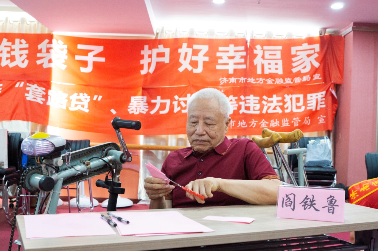 8月7日,增强残疾人防范意识、打击各类非法集资诈骗——济南市残疾人艺术家“防范非法集资金融诈骗”主题笔会在我集团党群活动室举行。济南市残联宣文处副处长刘大新,泉城金融卫士志愿者宣传团党支部书记、团长赵银光,原济南市老龄委主任、泉城金融卫士志愿者宣传团顾问团团长于敏等领导出席活动。济南市残疾人福利基金会副理事长吴哲主持活动,济南市残疾人文学艺术界联合会主席、我集团党支部书记王勇博士出席活动并致辞。残疾人画家、书法家、剪纸艺术家、泉城金融卫士志愿者宣传团团员等30余人参加活动。