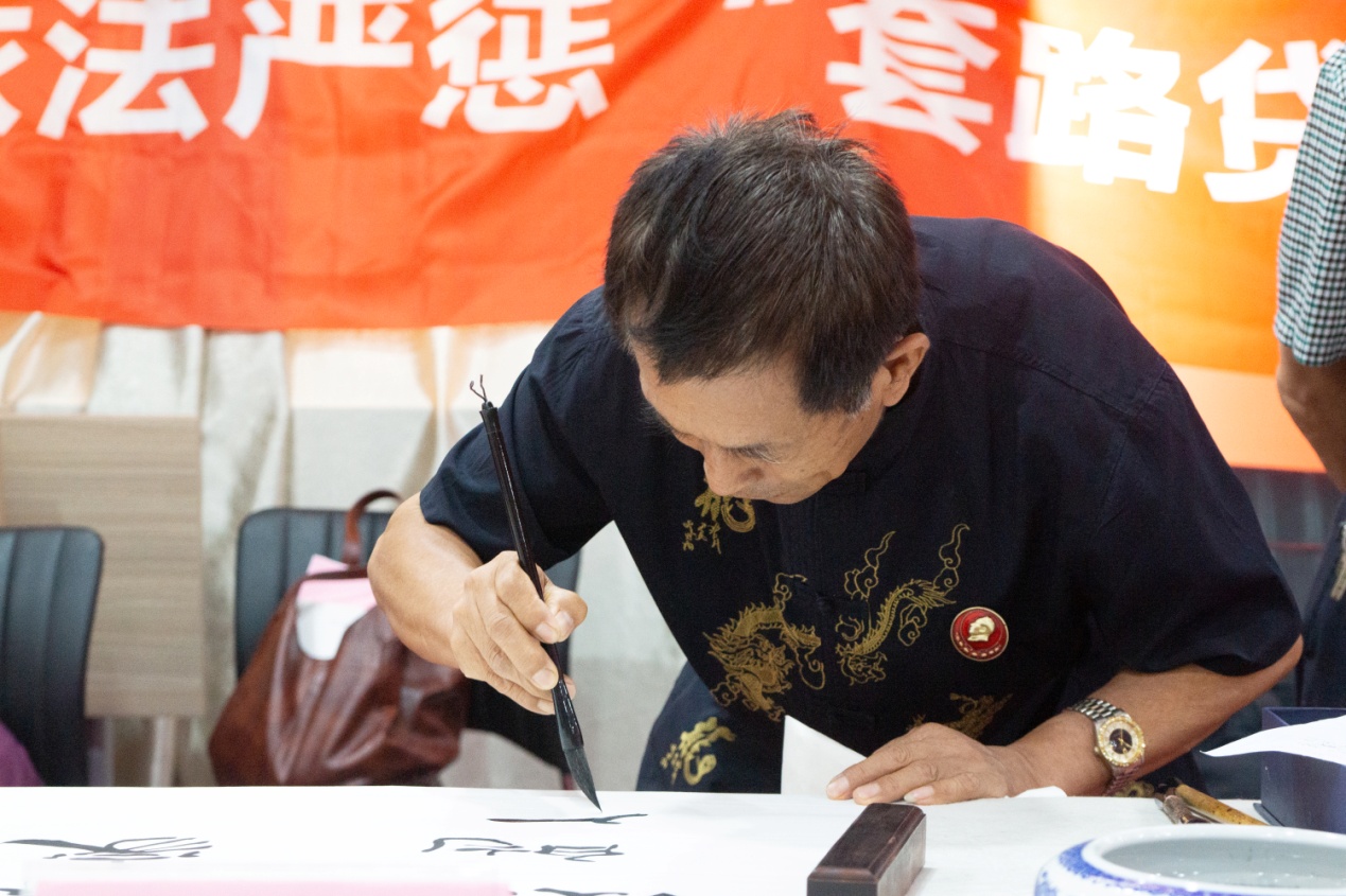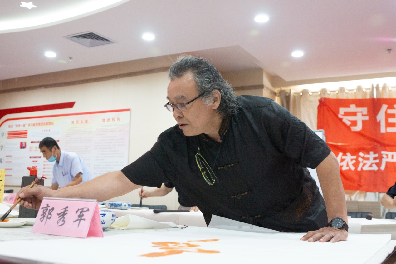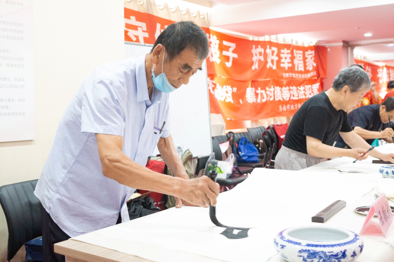 在泉城金融卫士志愿者宣传团组织开展主题党日活动的同时,残疾人艺术家“防范非法集资金融诈骗”主题专场笔会正式开始。众位残疾人画家、书法家纷纷拿起画笔泼墨挥毫,剪纸艺术家拿起剪刀精雕细琢,现场气氛热烈。