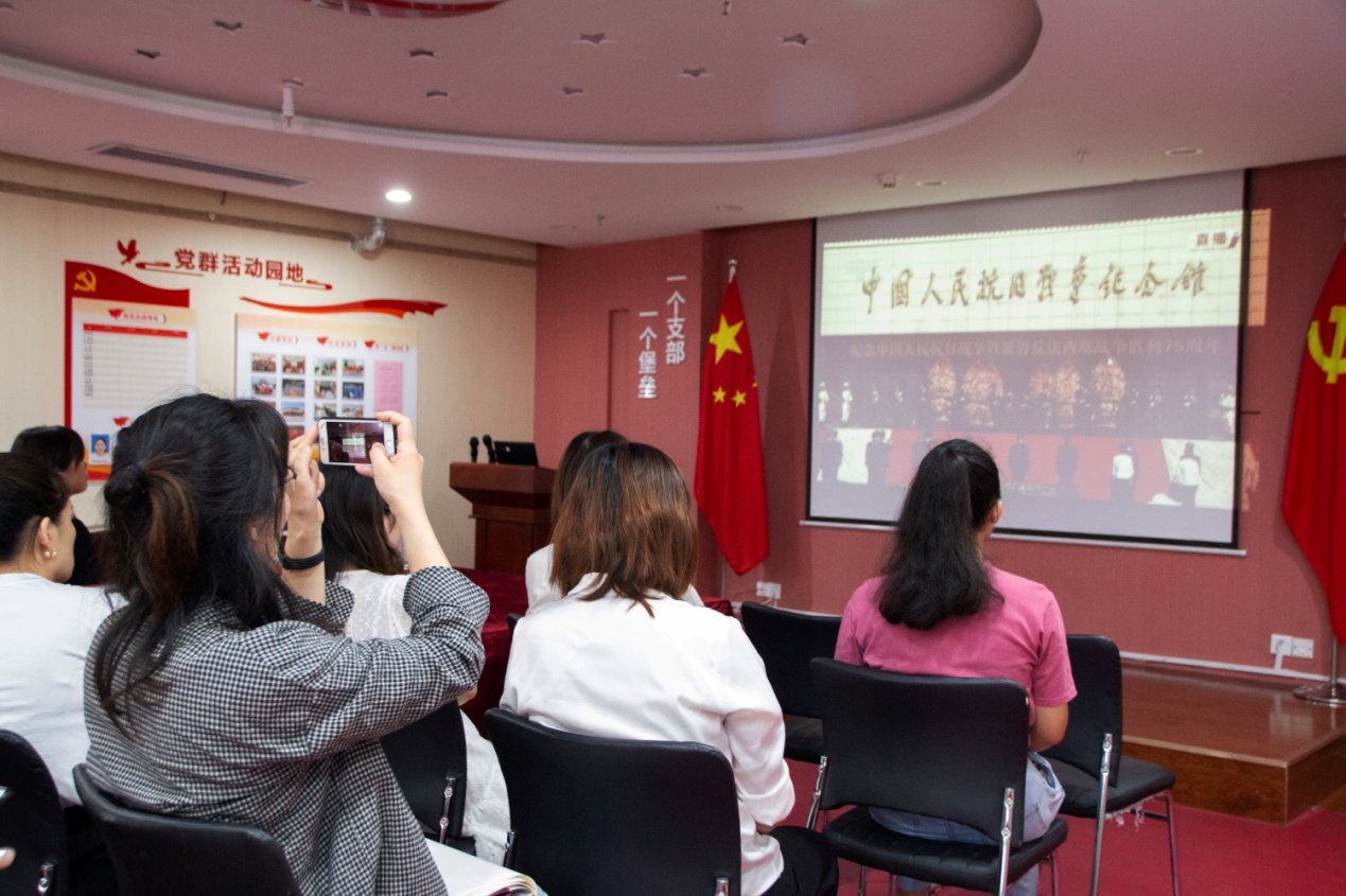 在集团党支部书记王勇博士的倡导下,党支部副书记桑守正带领党员突击队队员代表在党群活动室观看了“向抗战烈士敬献花篮仪式”视频直播。