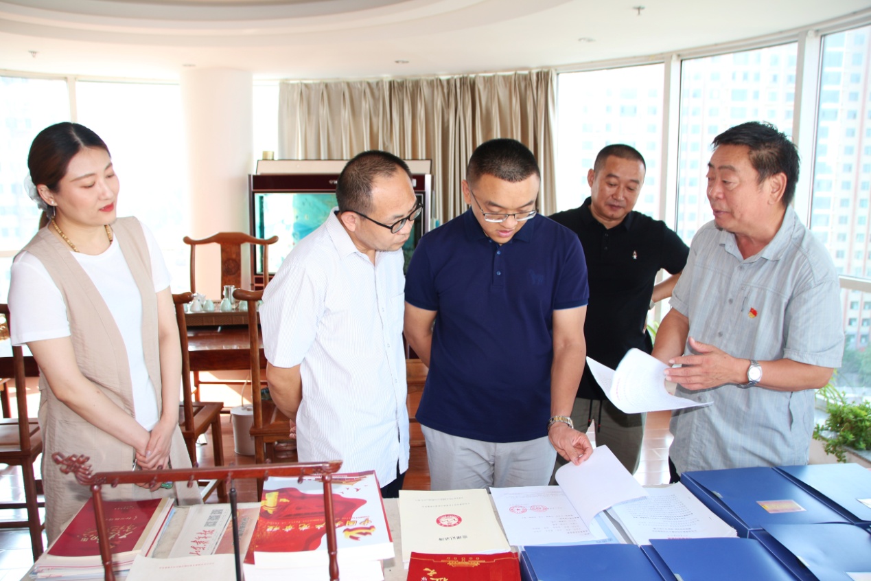 在桑守正同志的解说和引导下,山东圣创控股集团各位领导对麦德森集团总部进行了参观,翻阅查看了党支部“三会一课”会议记录、党员手抄党章、《麦德森人》企业内刊等支部党建材料。