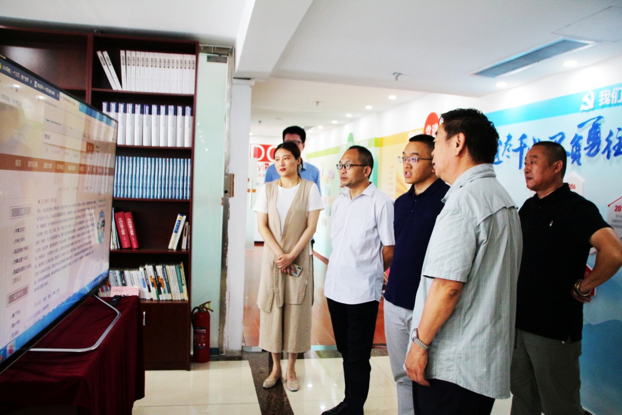 参观过程中,桑守正同志向各位领导详细介绍了以麦德森集团党员为核心的党员突击队建设,组织上高度融合、工作上相互促进的“长鼓型”党建工作法,“医学知识信息服务平台——‘搜搜中医’”等集团各项业务当前发展情况和未来发展方向,并与各位领导分享了省委组织部制作的反映王勇博士自强不息精神和事迹的专题片《榜样》。