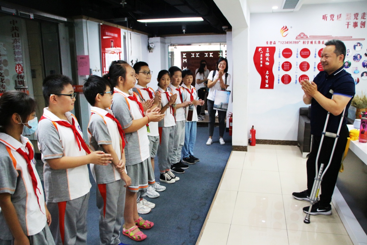 9月13日,济南市营市东街小学王勇中队少先队员们来到麦德森集团参观学习。“王勇中队”主人公、集团党支部书记王勇博士引导少先队员们对集团总部进行了参观。