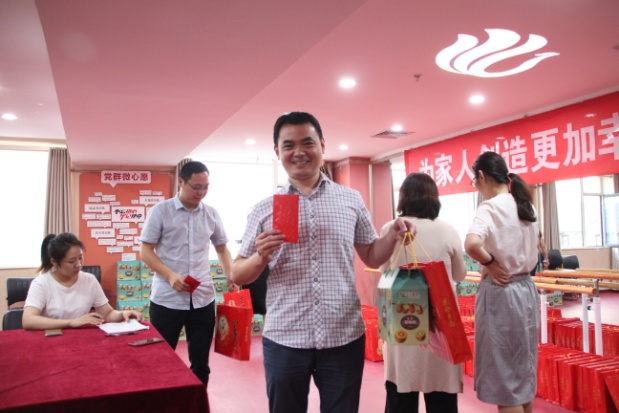9月22日下午,集团工会、办公室、财务部的工作人员在党群活动室将载满祝福的中秋福利发放给每一位员工。现场气氛热烈,温馨和谐的喜庆气氛洋溢在公司每个角落。