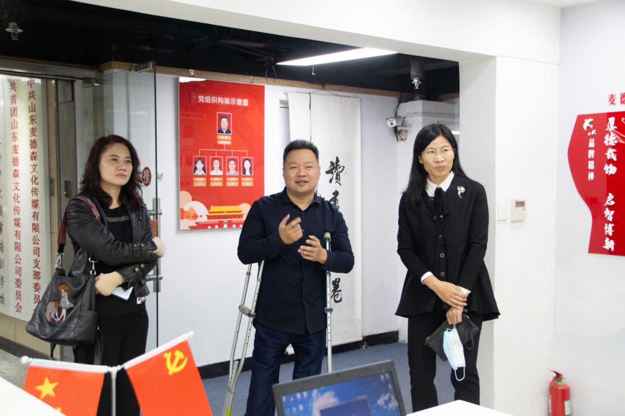 10月13日,济南市文联党组成员、副主席刘艳丽,市文联组联部主任范莹等领导莅临麦德森考察参观。集团党支部书记王勇博士等陪同考察。