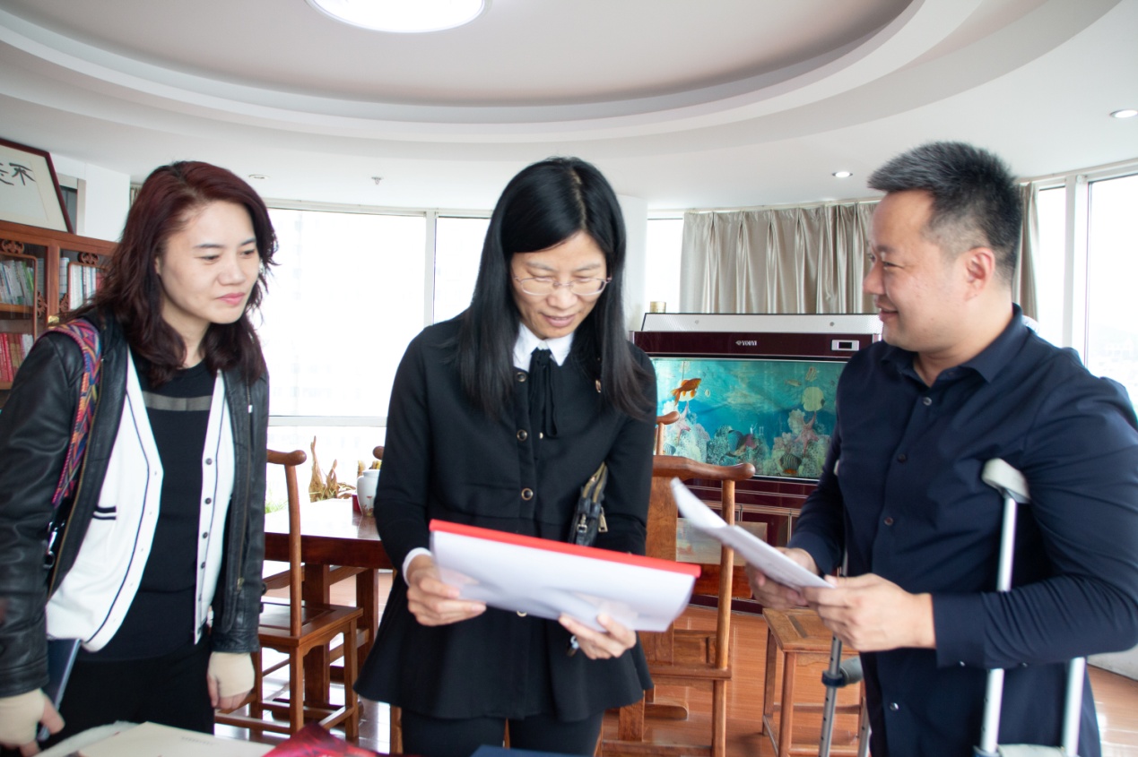 在党建活动室,刘艳丽副主席认真查看了集团《战疫画册》、“三会一课”工作材料以及支部党员手抄党章。期间,王勇博士详细介绍了麦德森“长鼓型”党建工作法,他表示:“左边敲团队发展的思路和布局,右边敲团队建设的执行和实践。麦德森党建就像苗族的‘长鼓’,两边都能敲。”