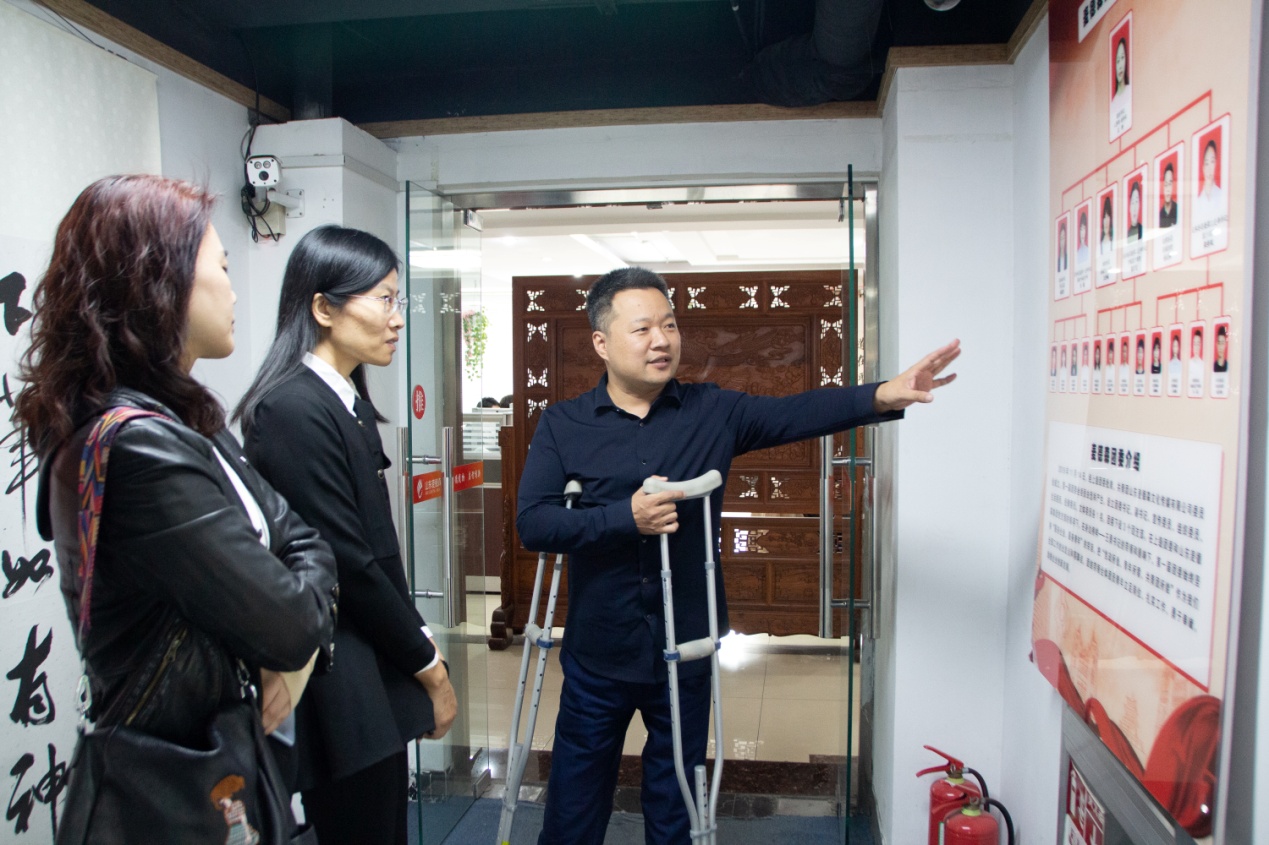 在王勇博士的引导下,刘艳丽副主席等领导依次参观了集团企业文化墙、党建活动室以及集团各业务职能部门办公区域,对集团党建工作、企业文化建设、各业务项目建设发展等工作进行了深入了解。参观过程中,王勇博士向各位领导详细介绍了企业名称“麦德森”的内涵,他表示,(麦)既有物质的基础,(德)又有精神的追求,集团的事业一定会像“森林”一样郁郁葱葱。